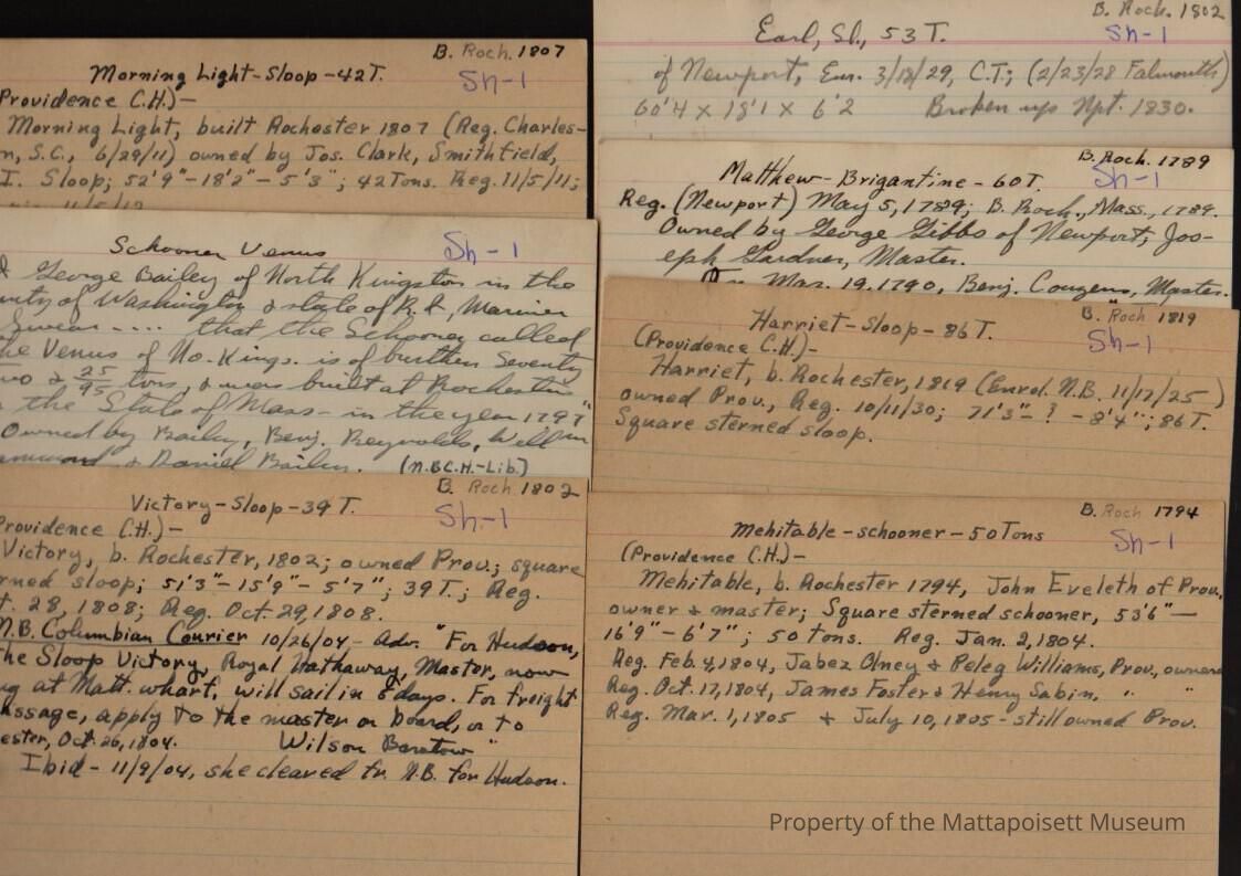 Research notes (Charles Mendell) Sloop Morning Light, Schooner Venus, Sloop Victory, Schooner Earl, Brig Matthew, Sloop Harriet, Schooner Mehitable, etc.Collection