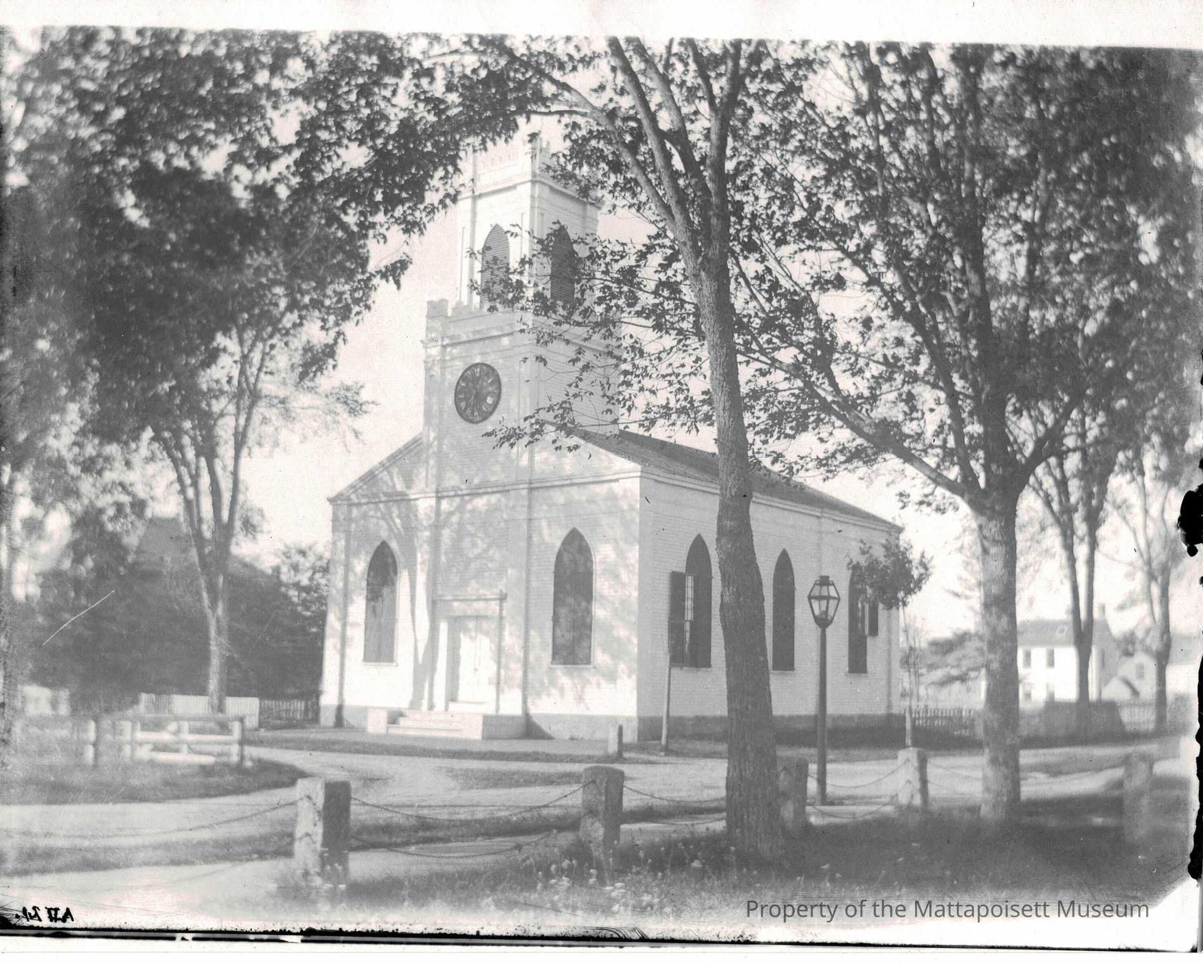 Photo of the Universalist Church on the corner of Barstow and Church Streets. Built in 1836, it was eventually torn down (c. 1953?) and replaced by an apartment building.Collection