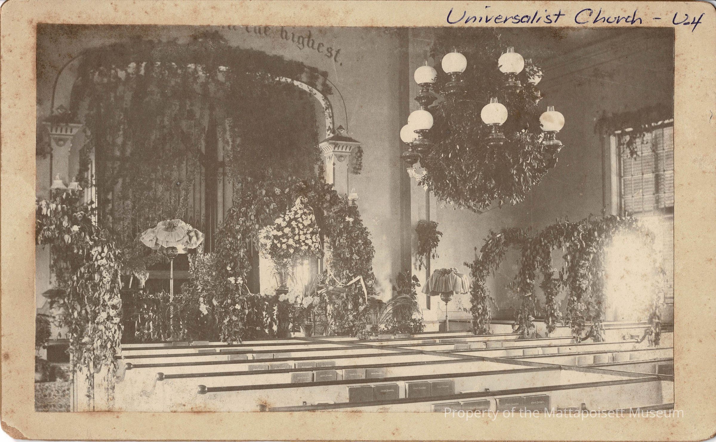 Photo of the Universalist Church on the corner of Barstow and Church Streets. Built in 1836, it was eventually torn down (c. 1953?) and replaced by an apartment building.Collection