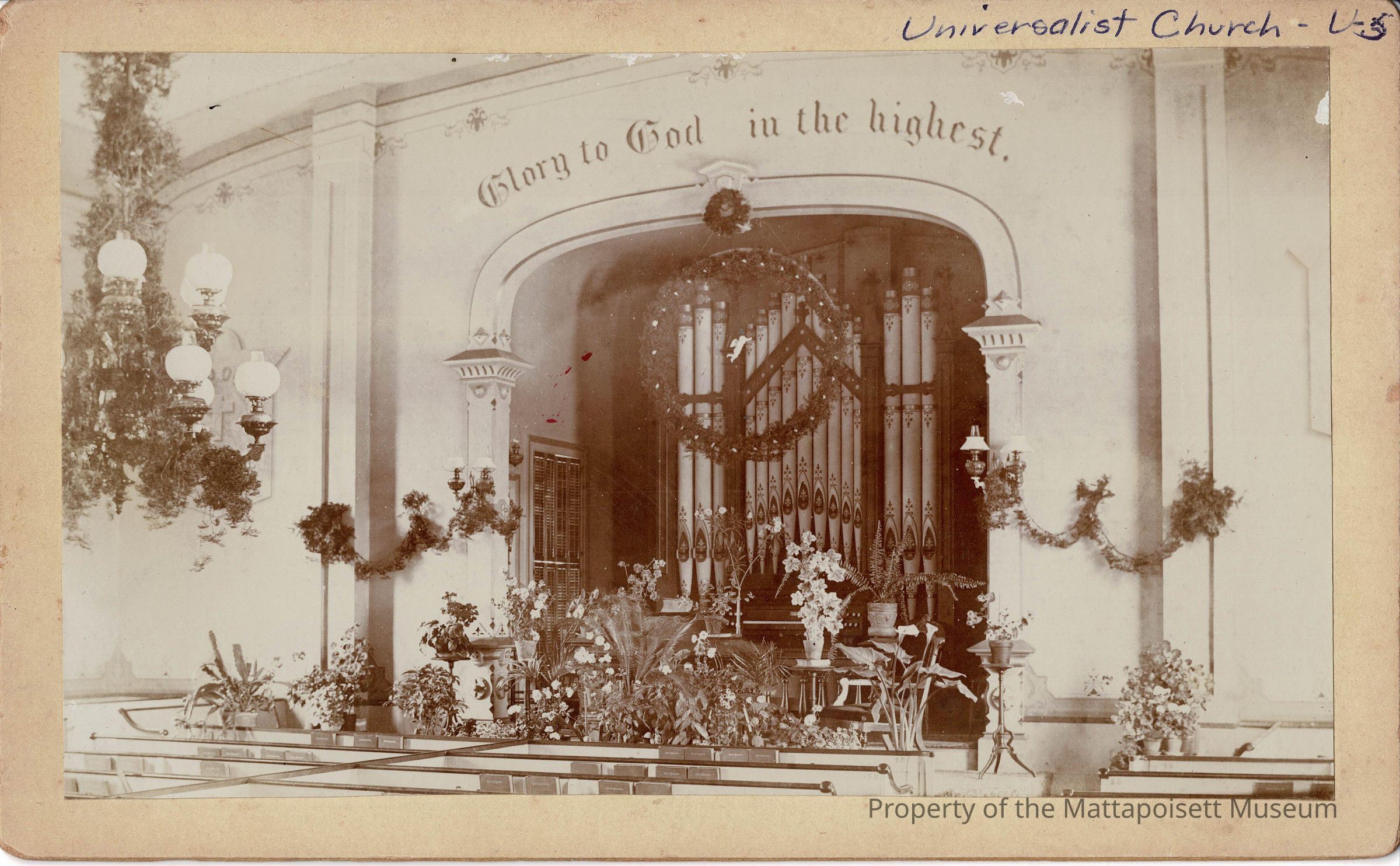 Photo of the Universalist Church on the corner of Barstow and Church Streets. Built in 1836, it was eventually torn down (c. 1953?) and replaced by an apartment building.Collection