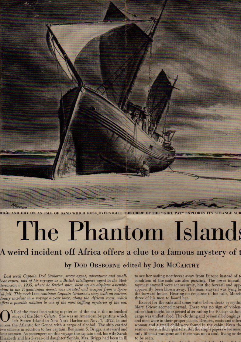 Magazine photocopy "The Phantom Islands" A weird incident off Africa offers a clue to a famous mystery of the sea.Collection