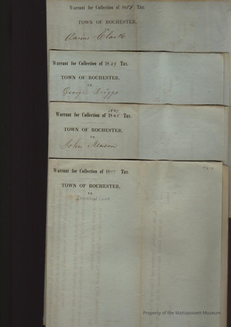 Warrant for Collection of Taxes in the Town of Rochester, Ichabod Luce, John Mason, George Briggs, Darius ClarkCollection