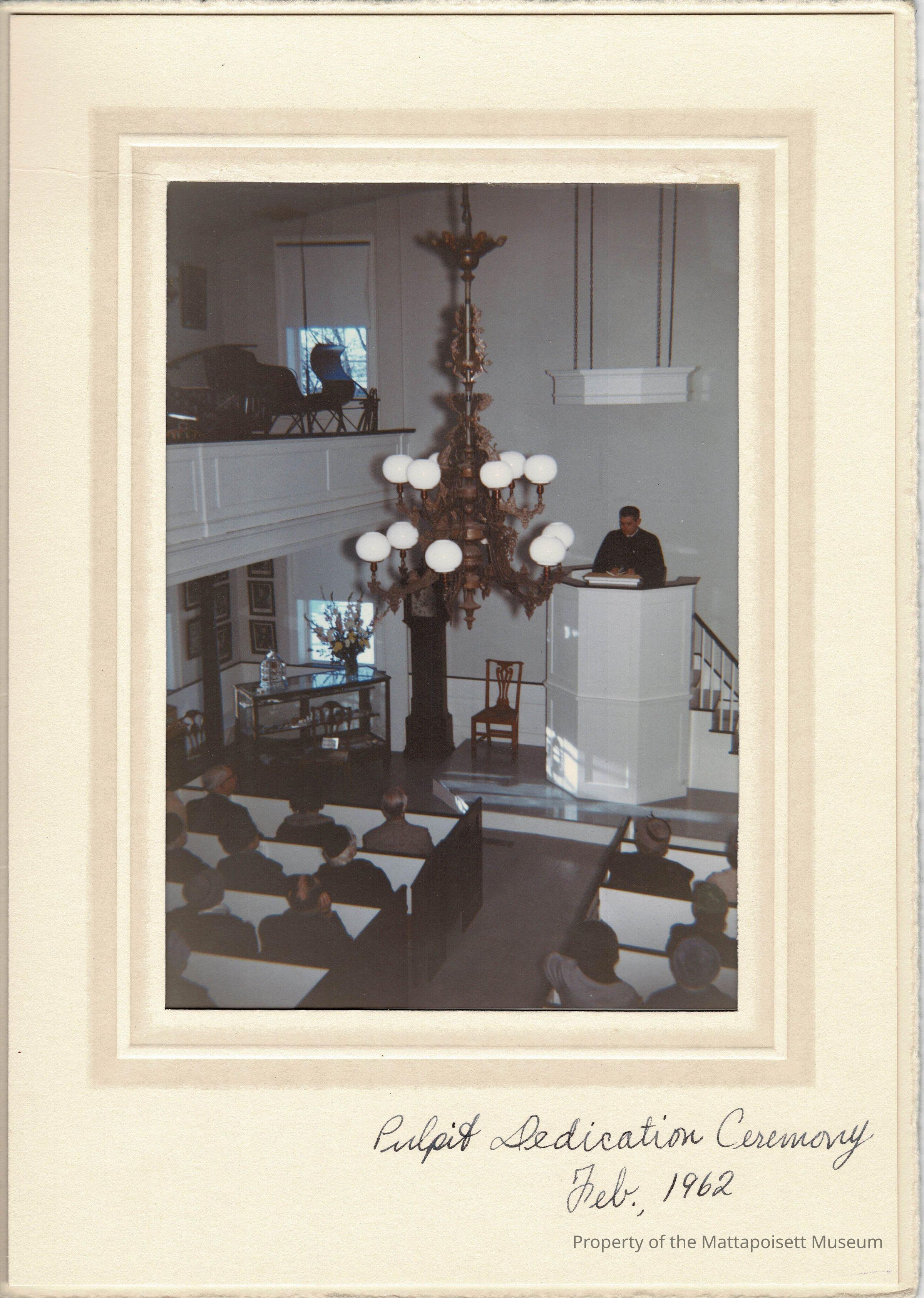 Pulpit dedication ceremony, Feb. 1962. Mr. Reynard in pulpit.Collection