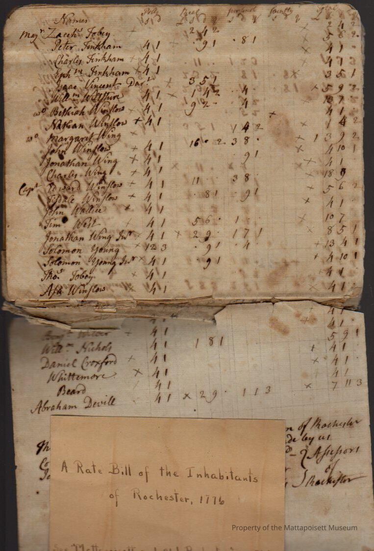 A Rate Bill of the Inhabitants of Rohester, 1776Collection