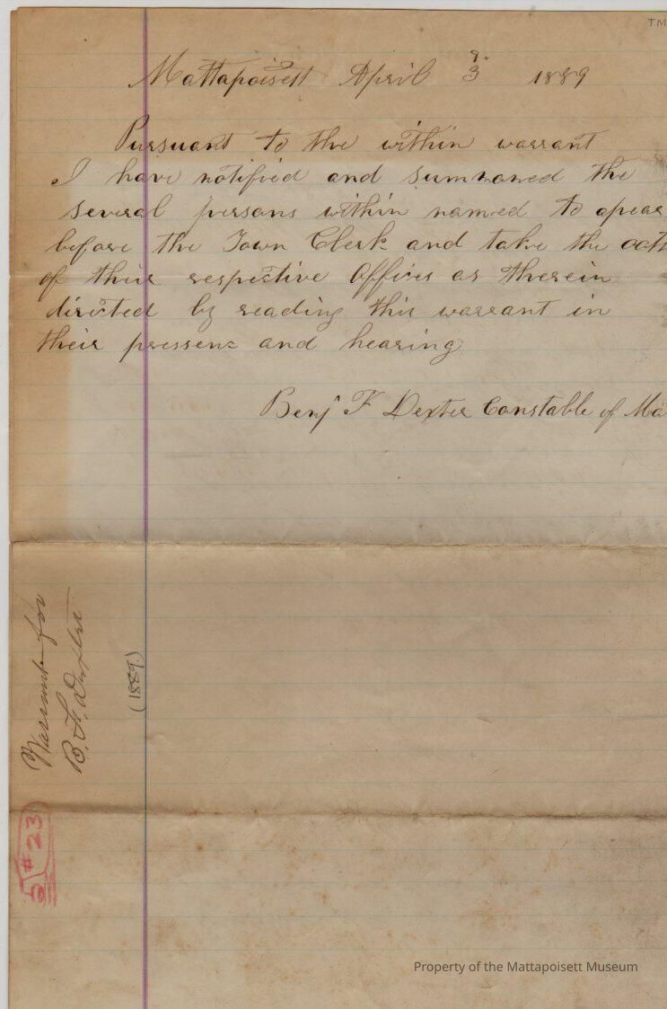 Notice that persons within town have been notified and summoned to appear before the Town Clerk.Collection
