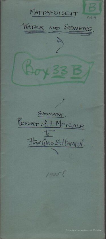 Mattapoisett Water and Sewers, summary report of L. Metcalf to Hon. Chas. S. Hamlin.