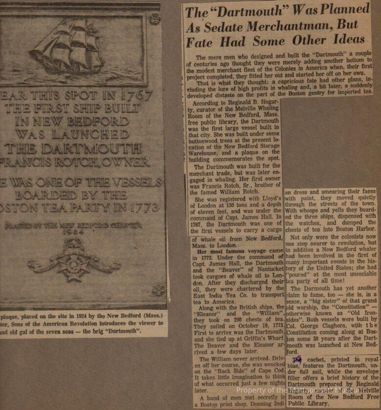Newspaper article "The 'Dartmouth' was planned as sedate merchantman, but fate had some other ideas"Collection