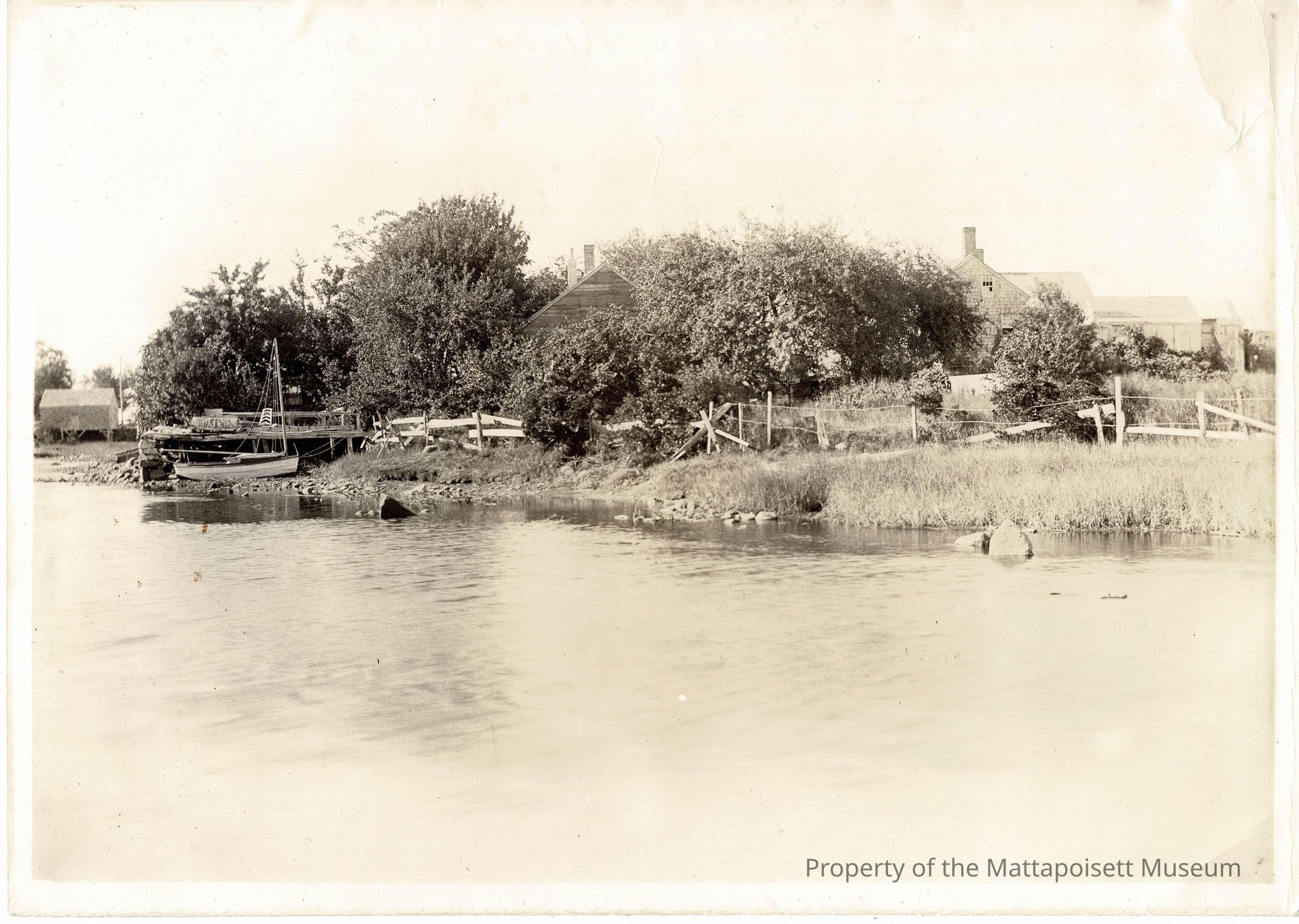 Photograph of the Mattapoisett River and surroundings. At left is the town grist mill, next is Robinson house.Collection