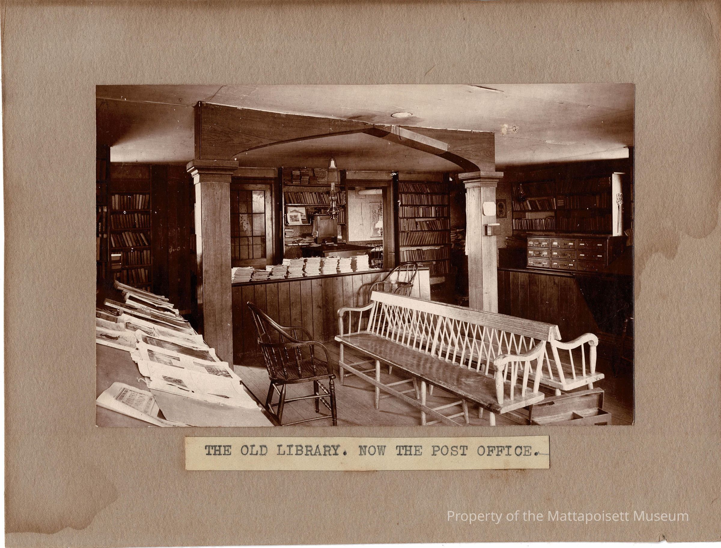 Photograph of the first town library, in a house on the corner of Water St. and Cannon St.Collection