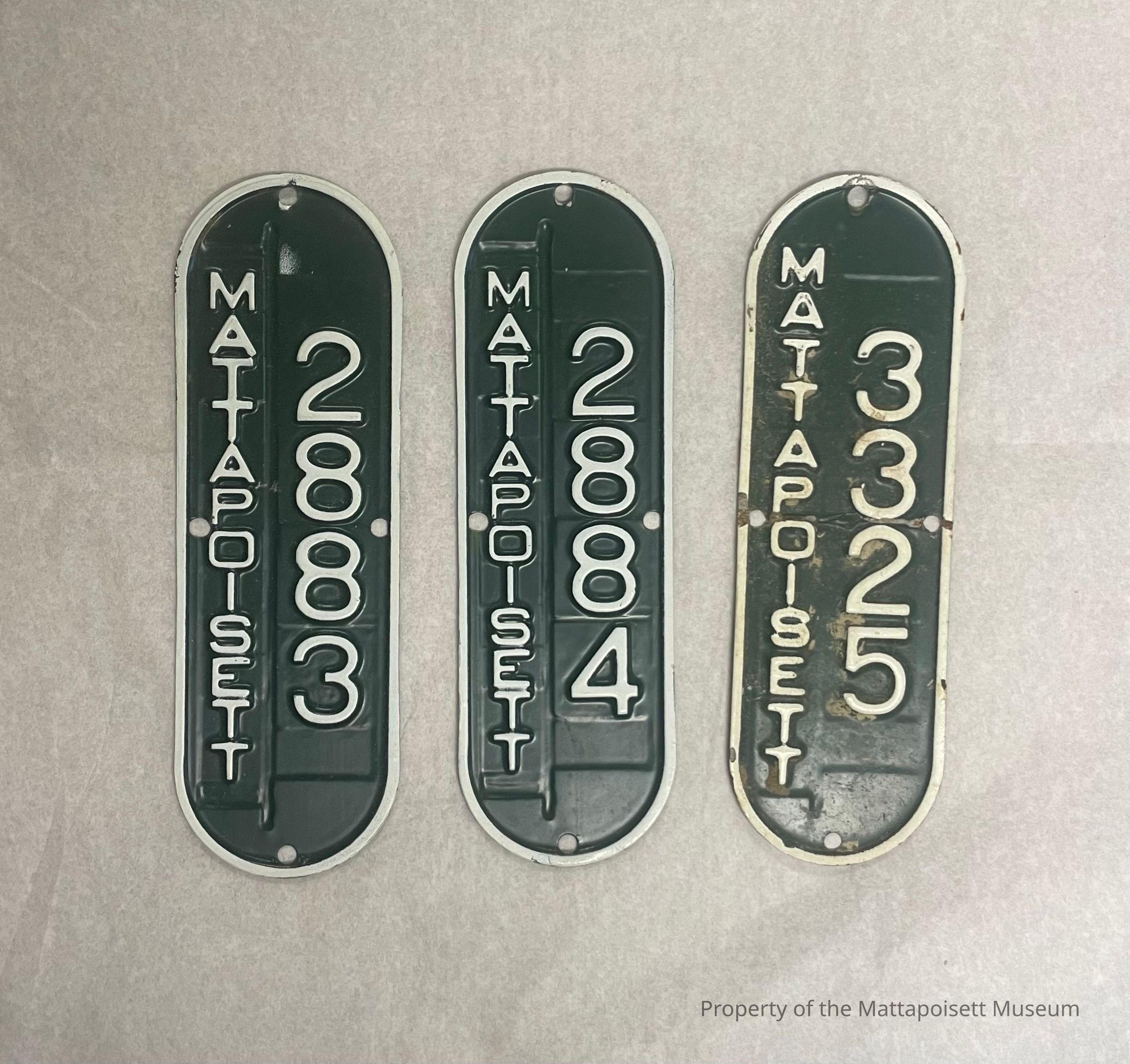 3 Mattapoisett bicycle license plates, ca. 1960sAcquisition
