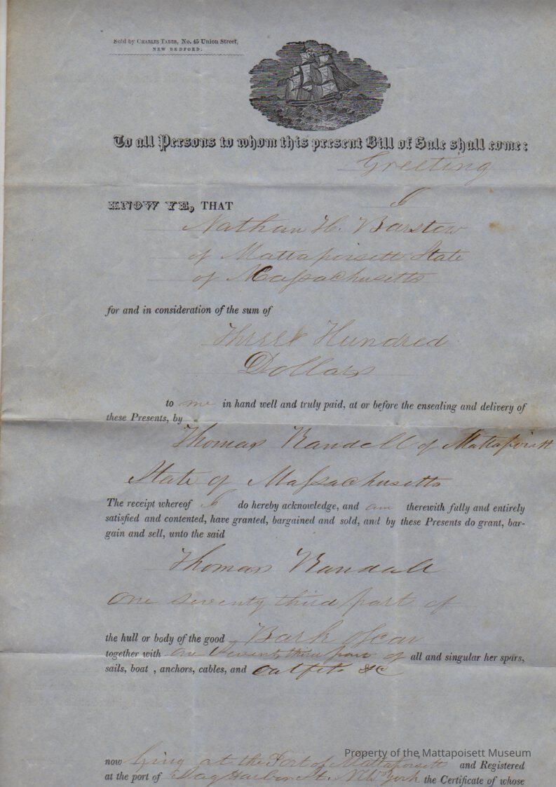 Sale of Bark Oscar from Nathan Barstow to Thomas RandallCollection