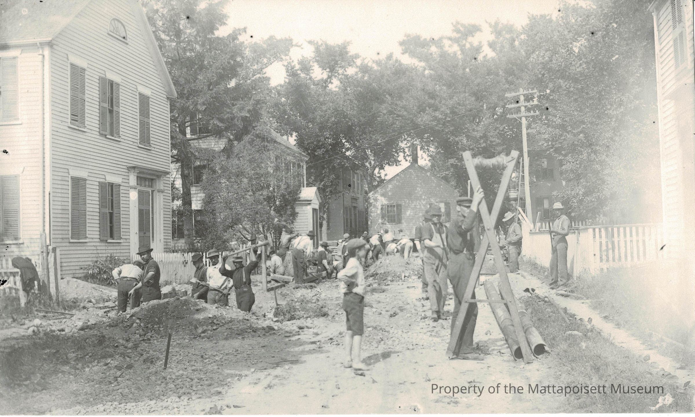 Photograph of the tracks being laid on Church Street for the New Bedford and Onset Street Railway trolley in Mattapoisett.Collection