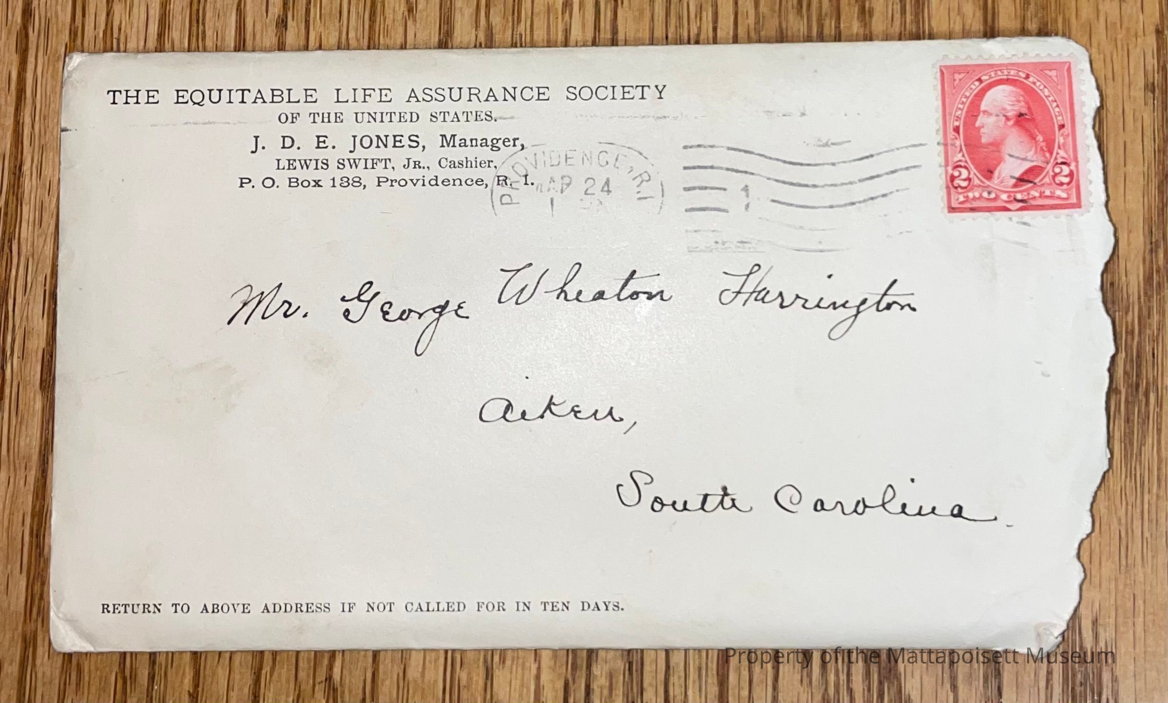 Part of the 2022.4 George W. Harrington collection. Harrington is a published author who spent his summers writing in Mattapoisett. 2022.4.02 is the Personal Correspondence series.Collection