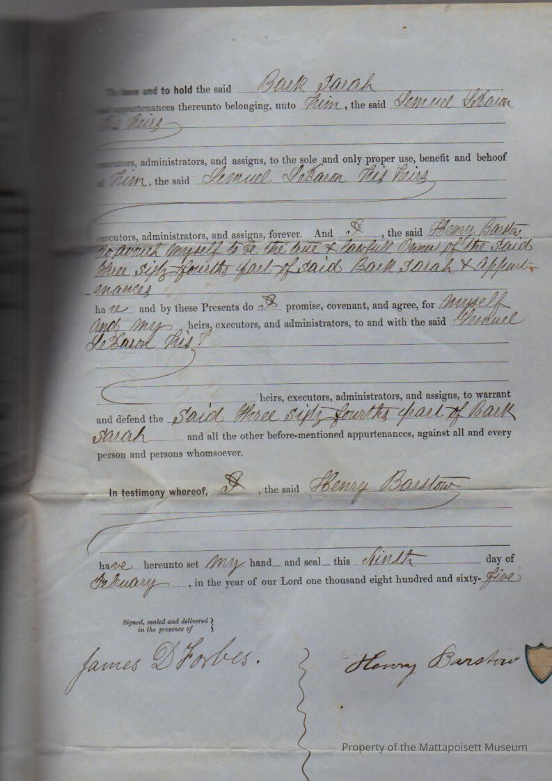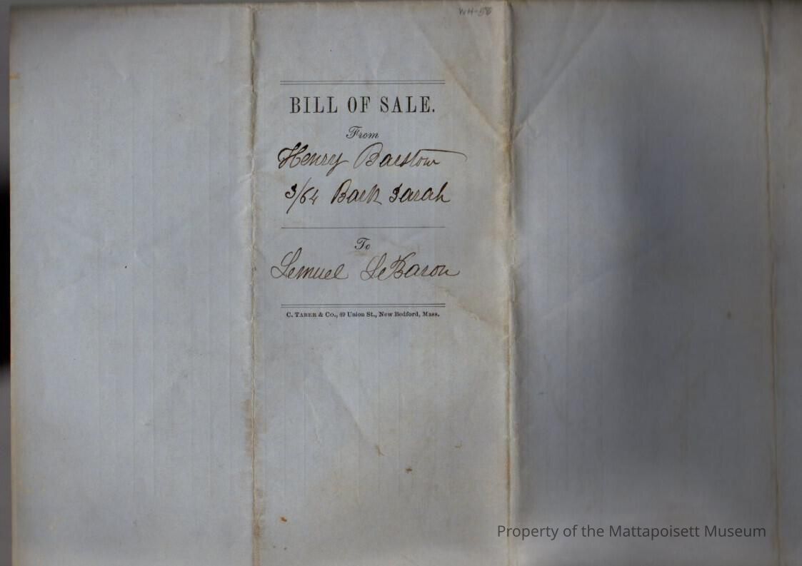 Bill of Sale for 3/64th of Bark Sarah from Henry Barstow to Lemuel LeBaron.Collection