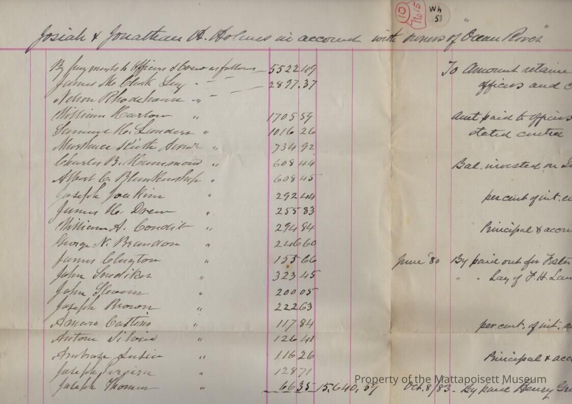 Josiah & Jonathan A. Holmes in account with owners of Ocean RoverCollection