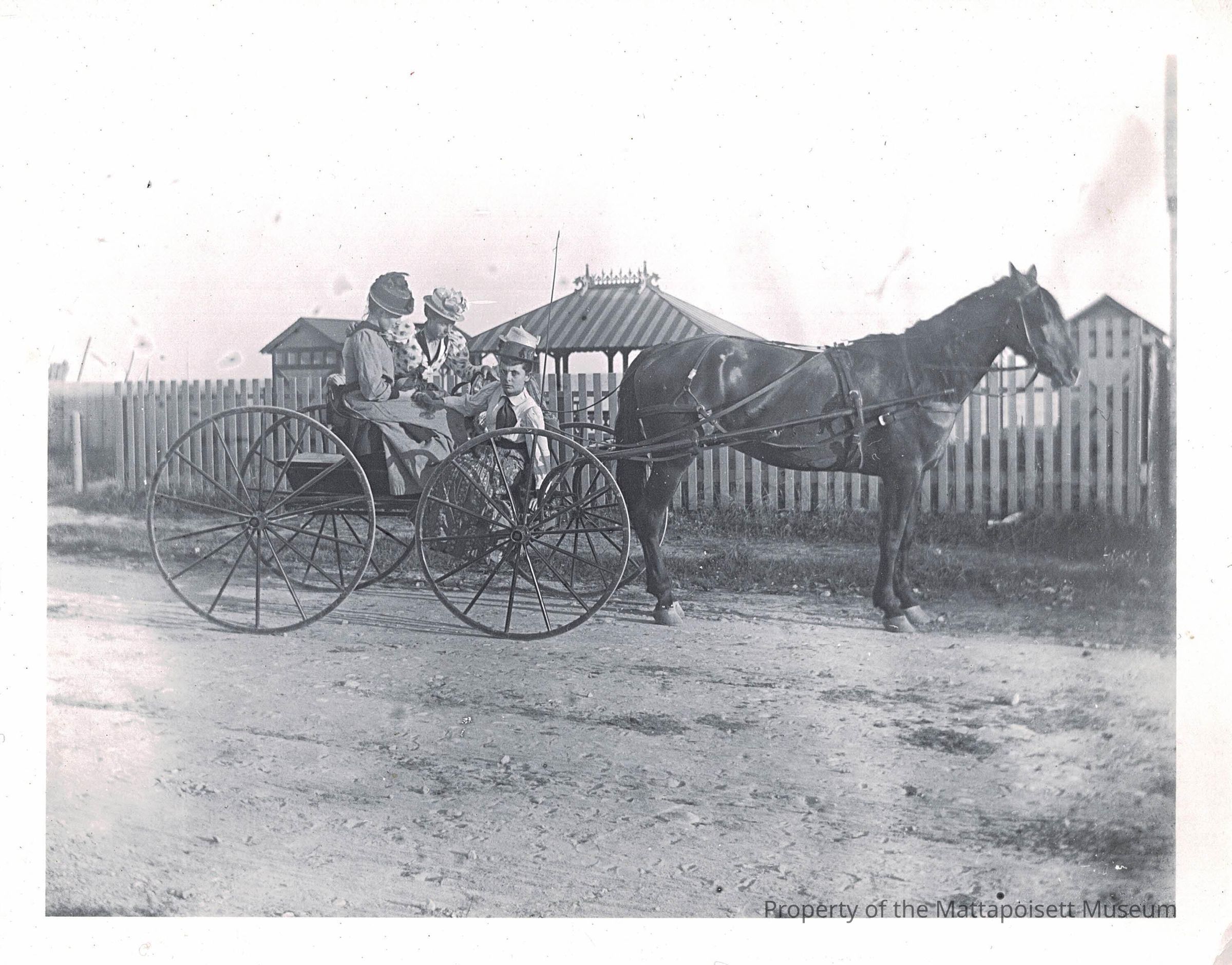 Photograph of a horse-drawn buggy at the bathing beach.Collection