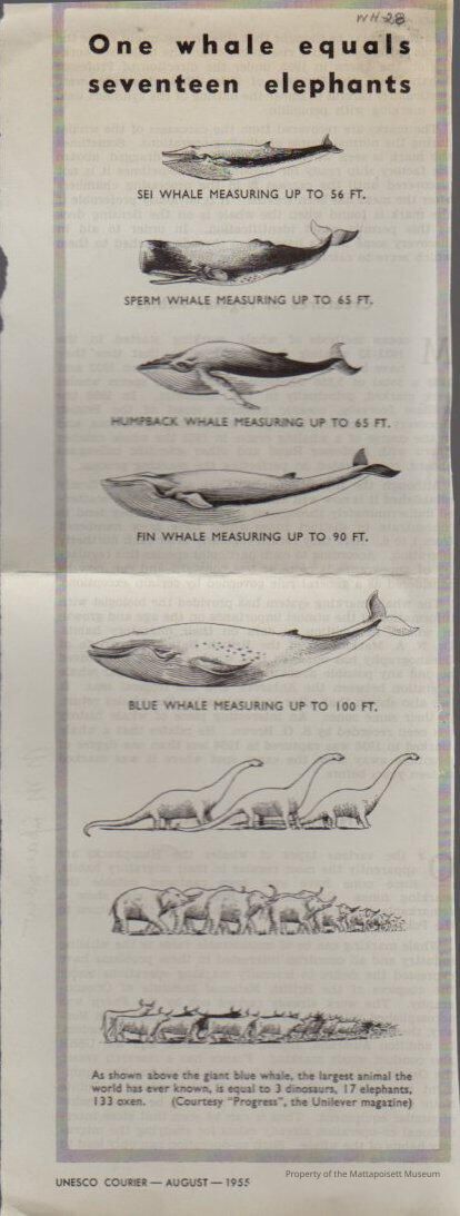 Unesco Courier page with examples of several whales and their on-land equivlent “One whale equals seventeen elephants”Collection