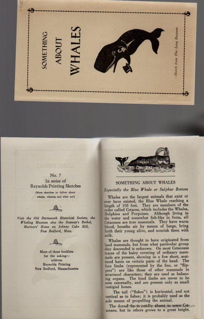“Something about whales”, No. 7 in a series of Reyolds Printing Sketches. Old Dartmouth Historical Society. Whales – Whaling – Whaleships, 100 years ago and today. 100th anniversary of Charles W. Morgan flyer.Collection