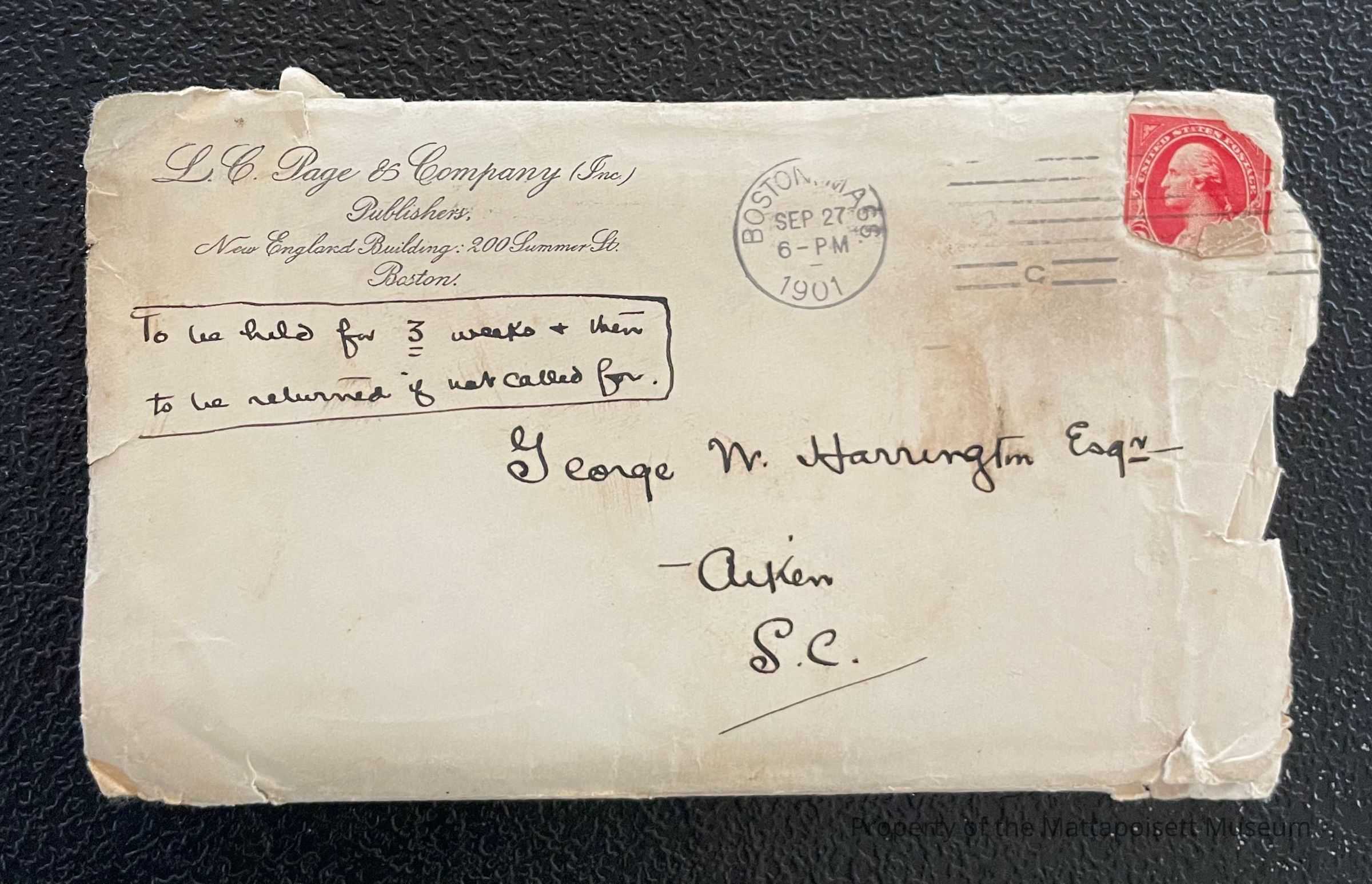 A letter from L. C. Page & Co. Publishers to George W. Harrington, 1901.Subject