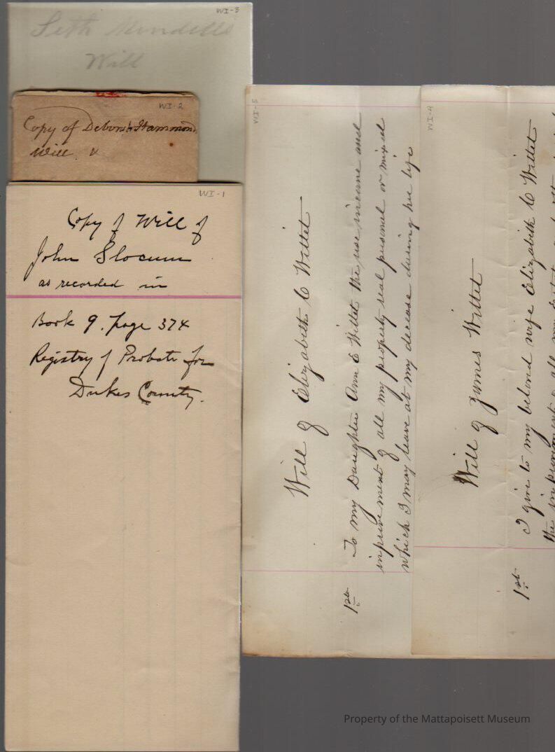 Wills of Seth Mendell, Deborah Hammond, John Slocum and Elizabeth Wittet.Collection