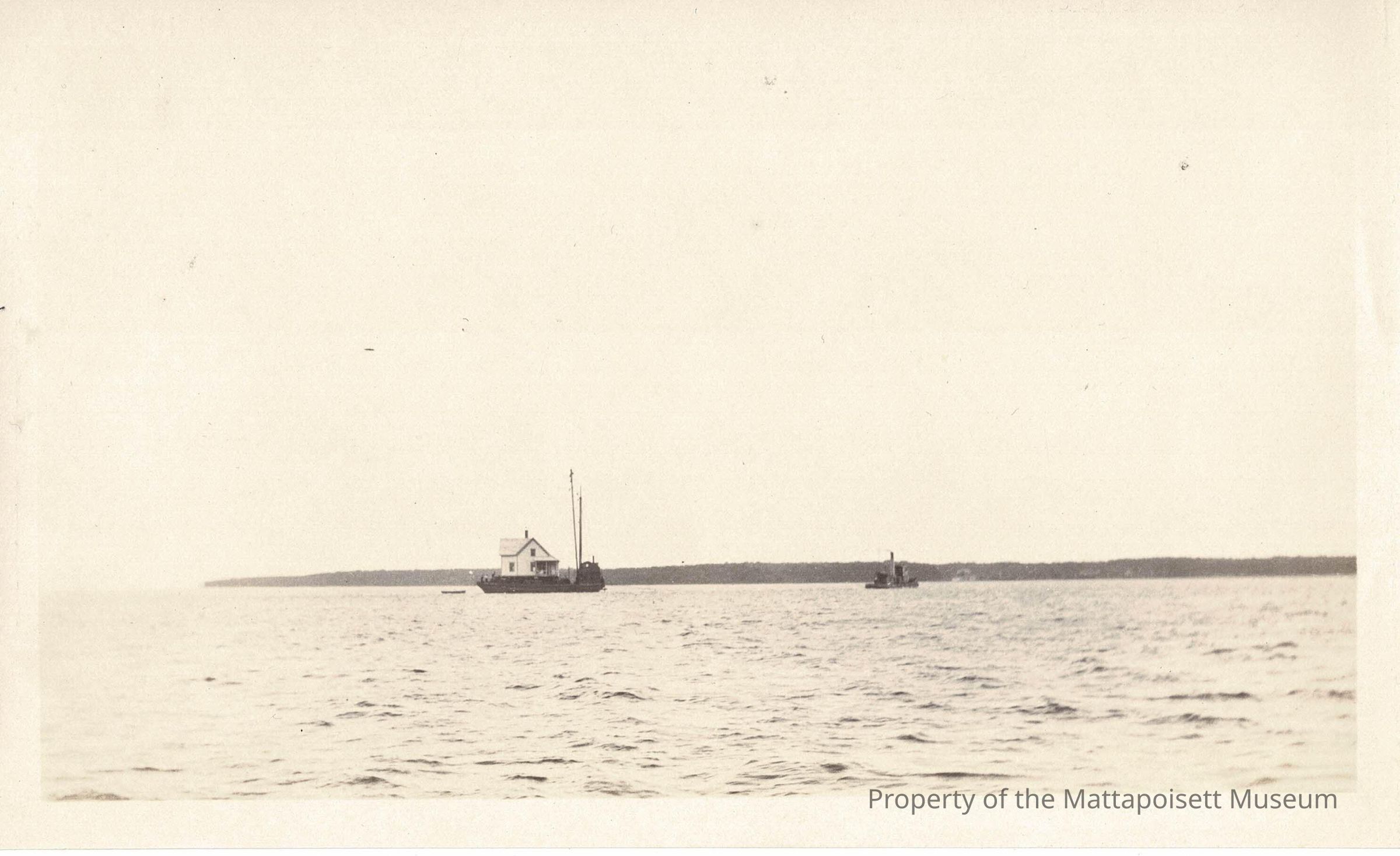 Photograph of the Ned's Point Lighthouse keeper's house being moved to Wing's Neck, Pocasset, MA on June 27, 1923.Collection