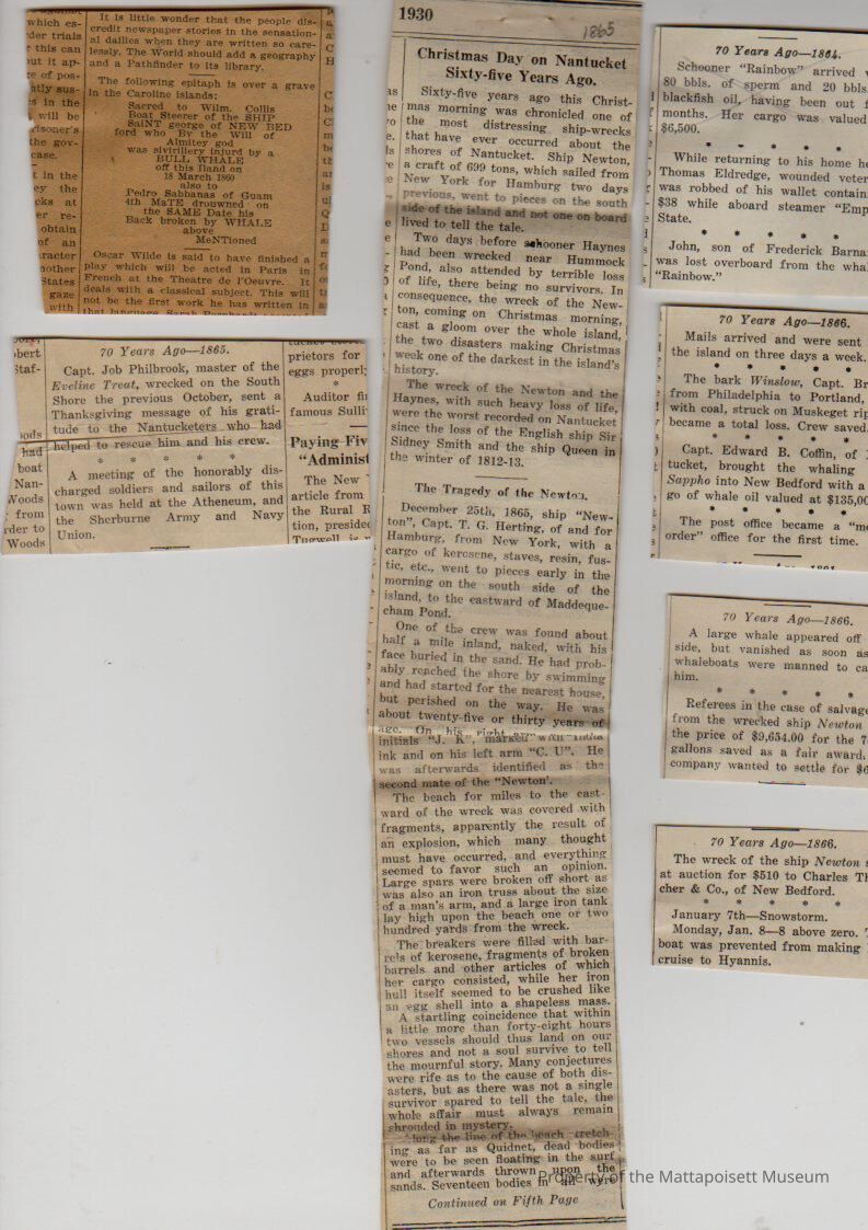 Newspaper articles "Looking Back" from Mercury about items and events 1860'sCollection
