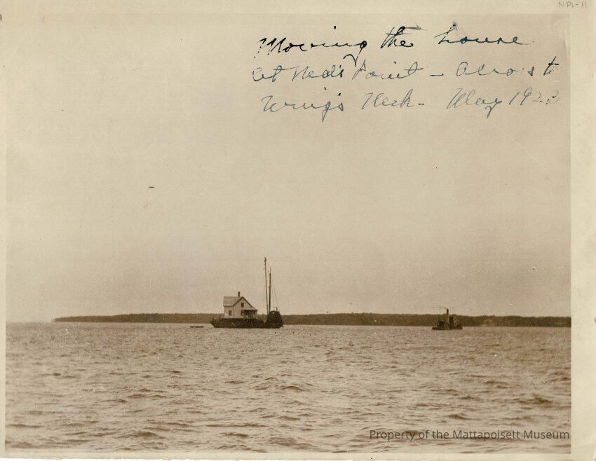 Moving the house at Ned's Point across to Wing's Neck May 1923Language
