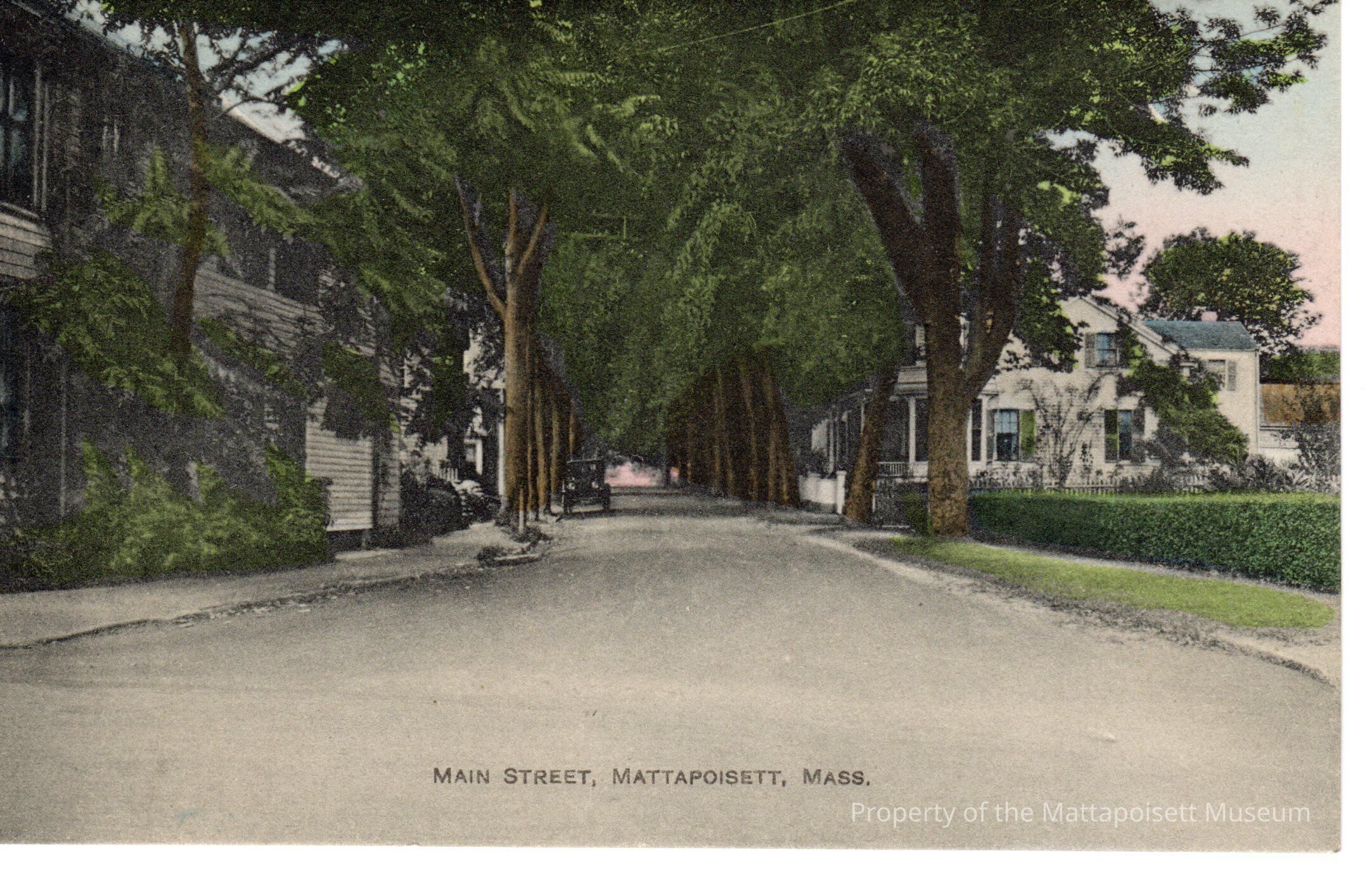 Color postcard showing Main Street, Mattapoisett. No writing on back.Acquisition