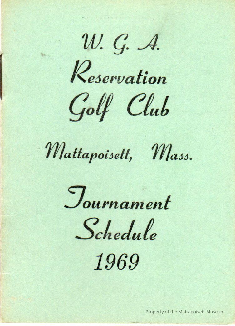 Tournament schedule for the Reservation Golf Club W.G.A., 1969. Lists dates and W.G.A. members.Acquisition