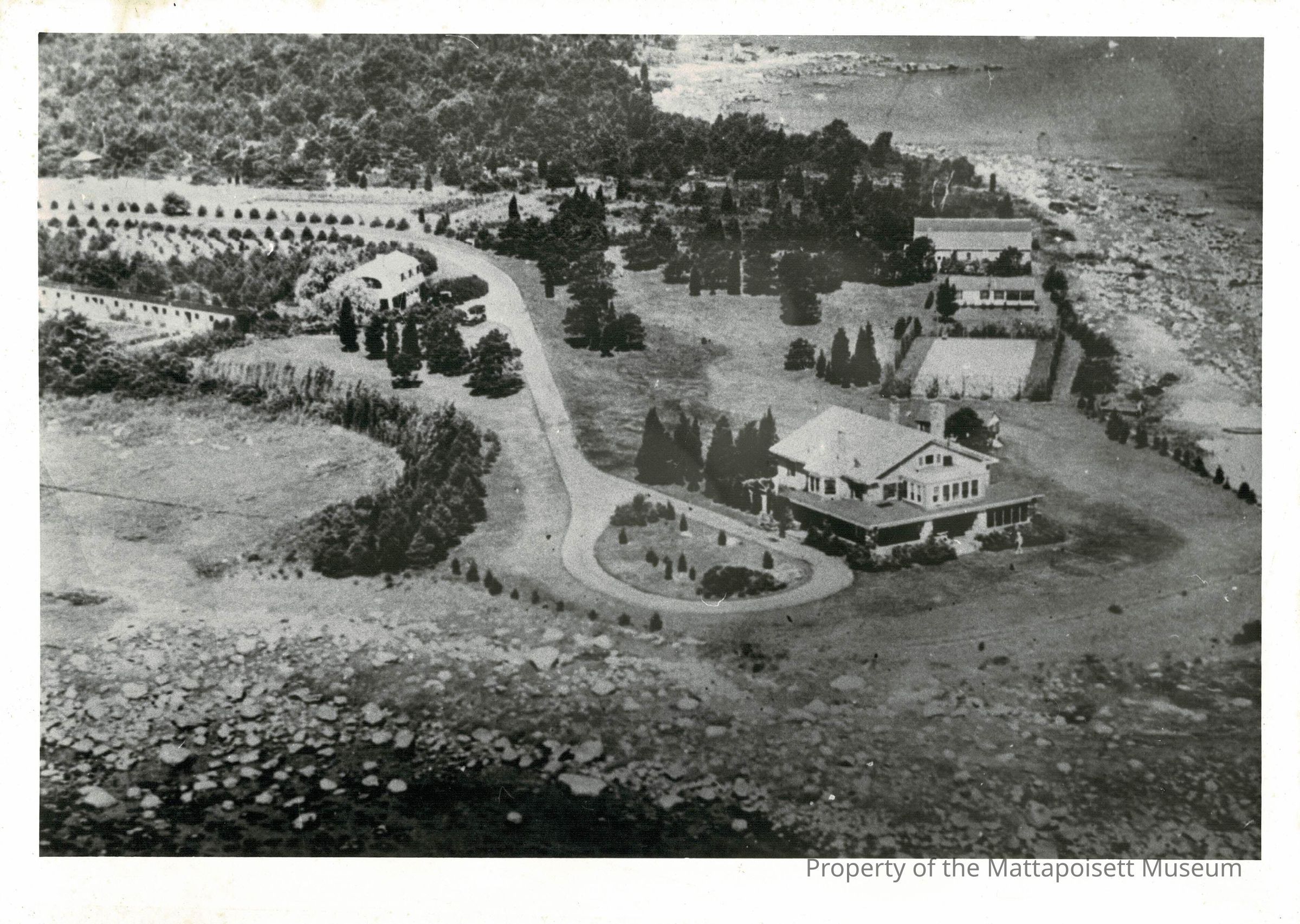 Aerial photograph of the Jerome George estate. It was later the Harbor Beach Club, Aucoot Cove.Collection