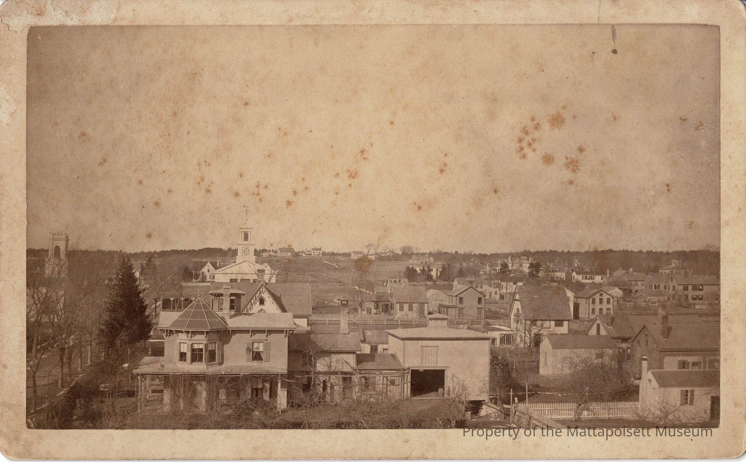 Photograph taken from a sail loft looking north. Dr. Sparrow's house (later home of the Putnam's) in the foreground.Collection