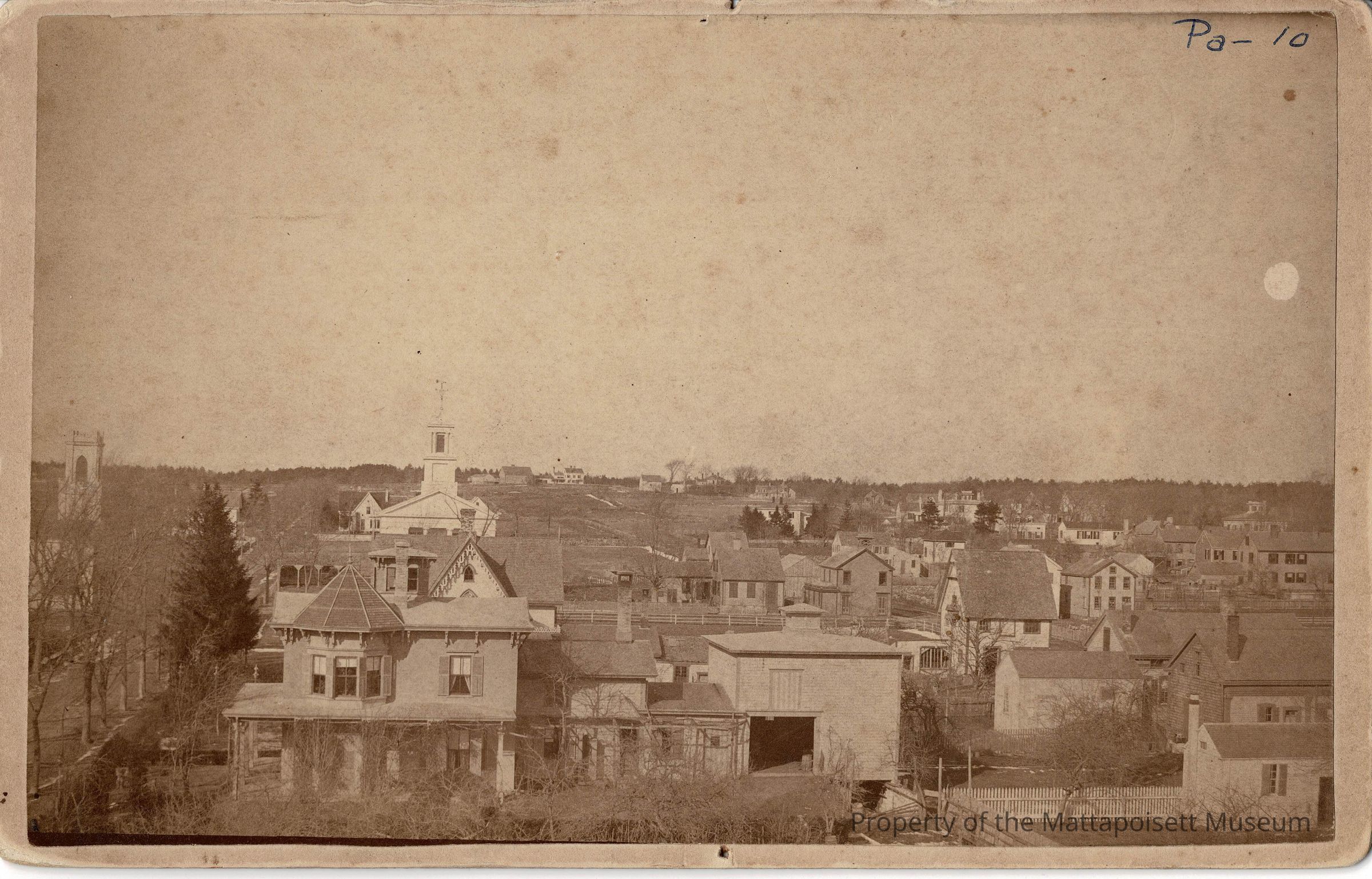 Photograph taken from a sail loft looking north. Dr. Sparrow's house (later home of the Putnam's) in the foreground.Collection
