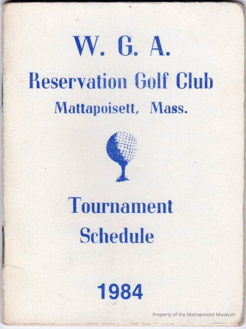 Tournament schedule for the Reservation Golf Club W.G.A., 1984. Lists dates and W.G.A. members.Acquisition
