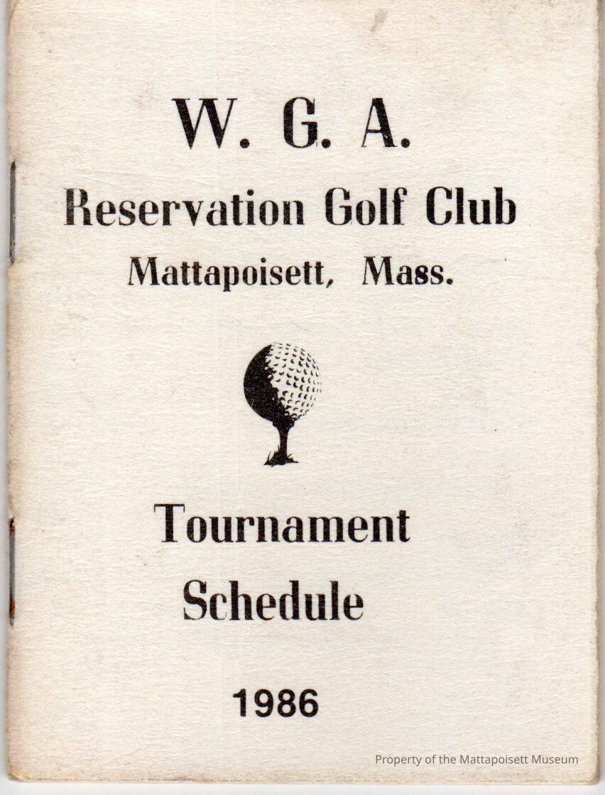 Tournament schedule for the Reservation Golf Club W.G.A., 1986. Lists dates and W.G.A. members.Acquisition