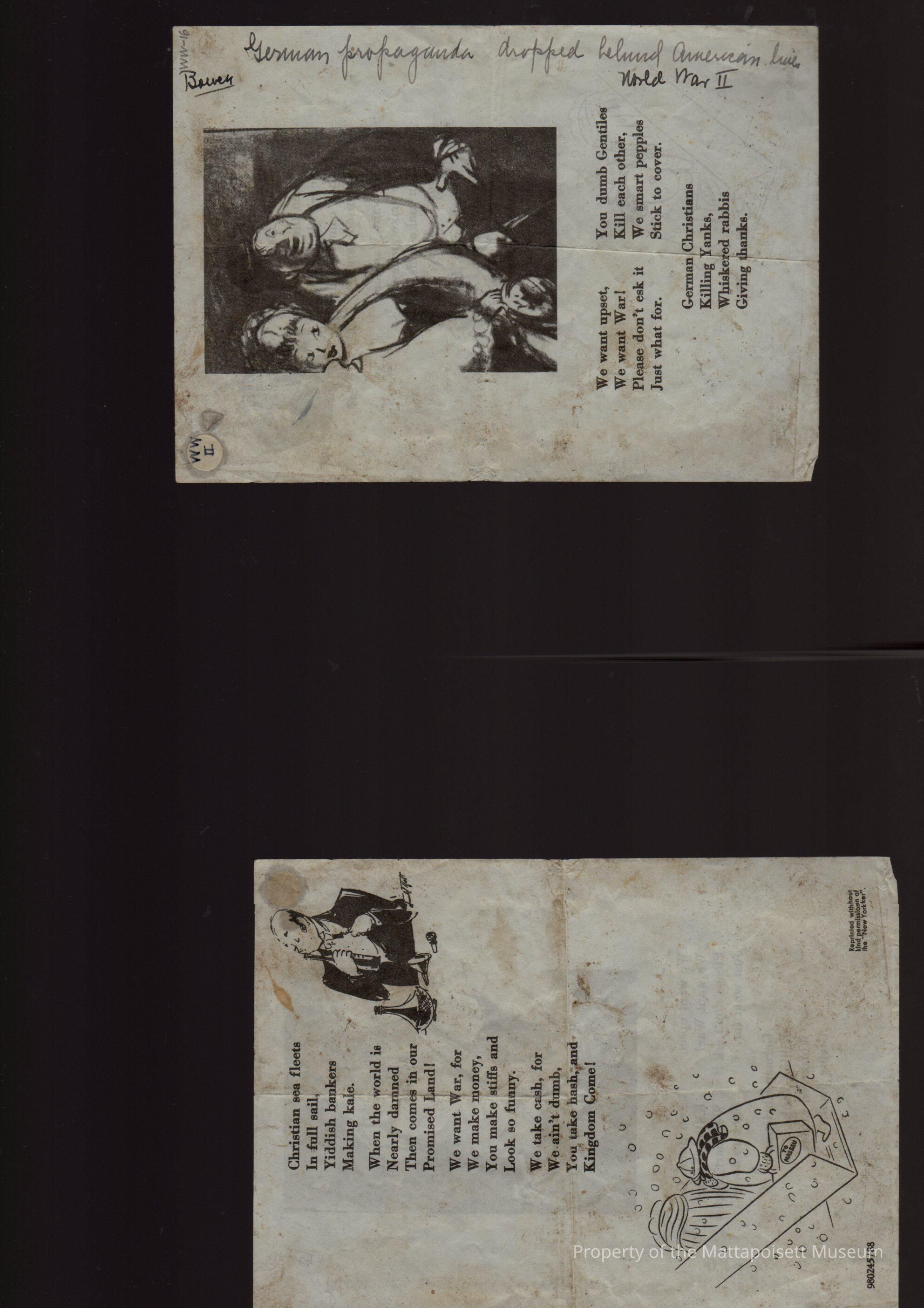 German propaganda dropped behind American lines during WWII (We want upset, We want War! Please dont esk it Just what for)Collection