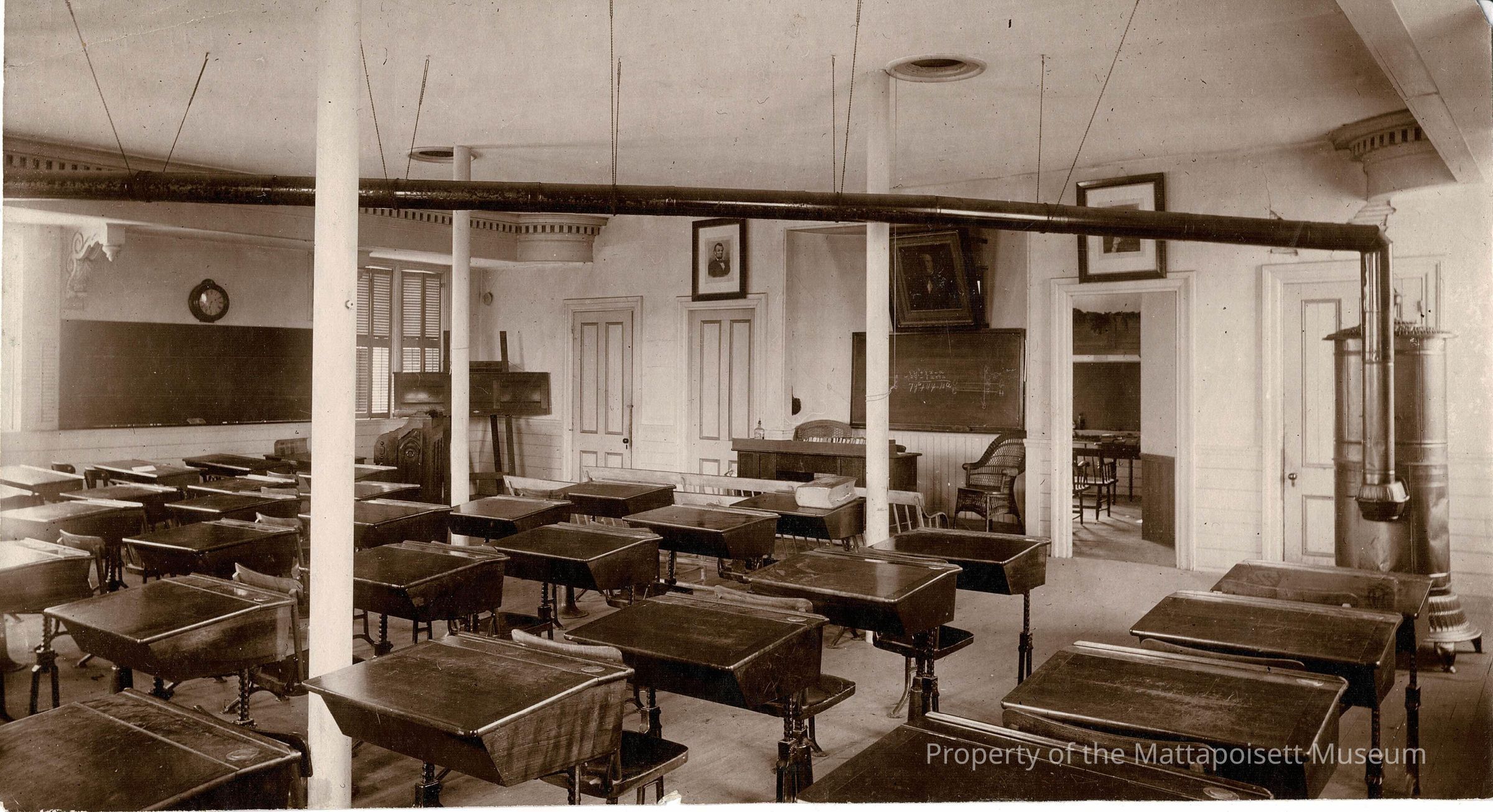 Photograph of a classroom in the Barstow School on the corner of Fairhaven Rd (now Route 1) and Main St.