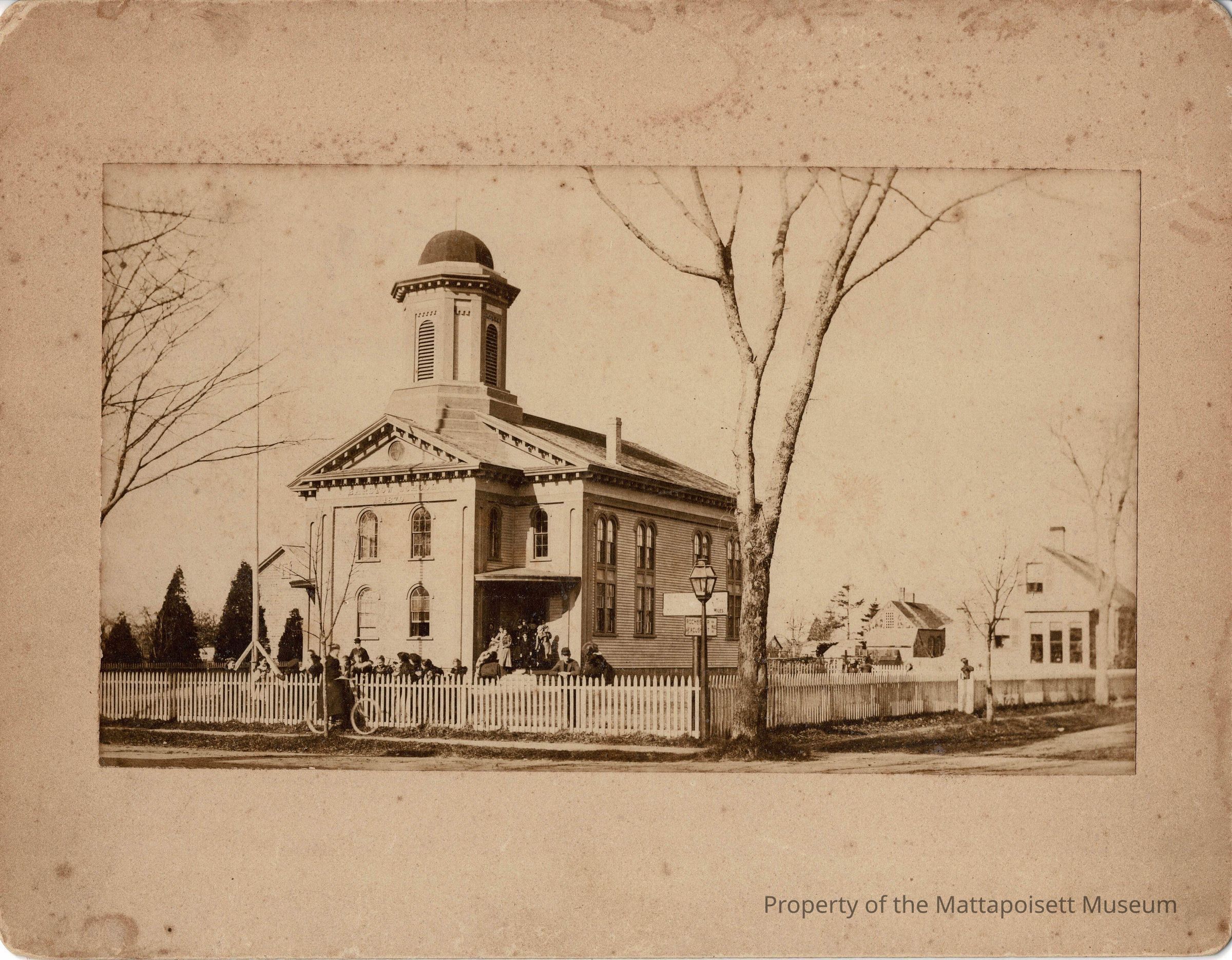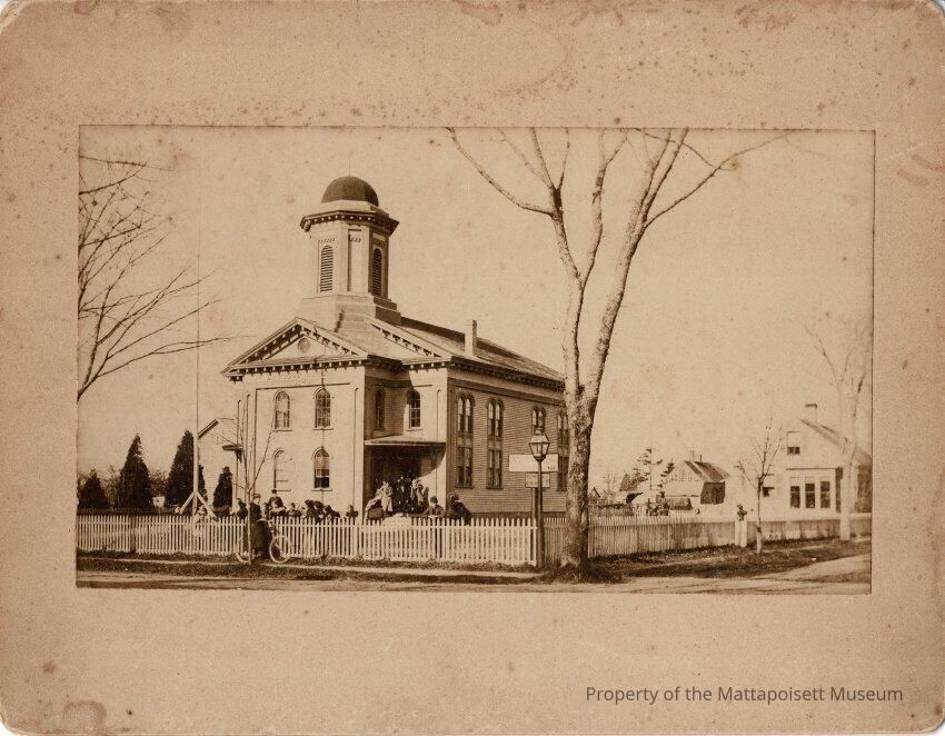 This building has been used for a series of purposes. In order: 3rd Meeting House of Congregational Church -> Mattapoisett Academy (a private school) -> Barstow School (1870) -> Mattapoisett Grange Hall (1965) -> Converted to apartments (1990s).Collection