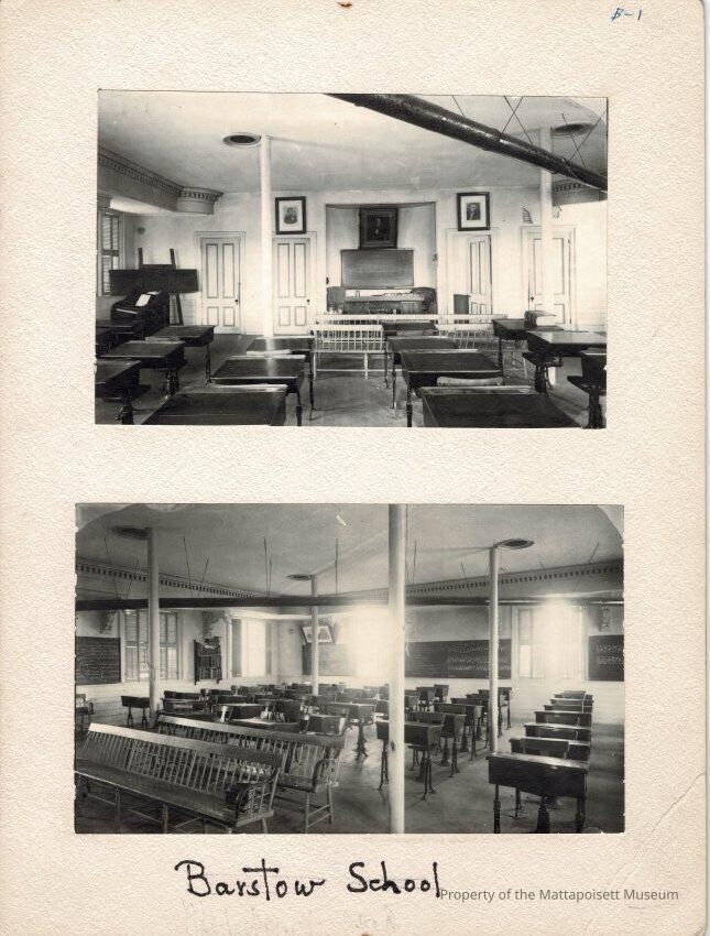 Two mounted photographs of a classroom in the Barstow School on the corner of Fairhaven Rd (now Route 1) and Main St.