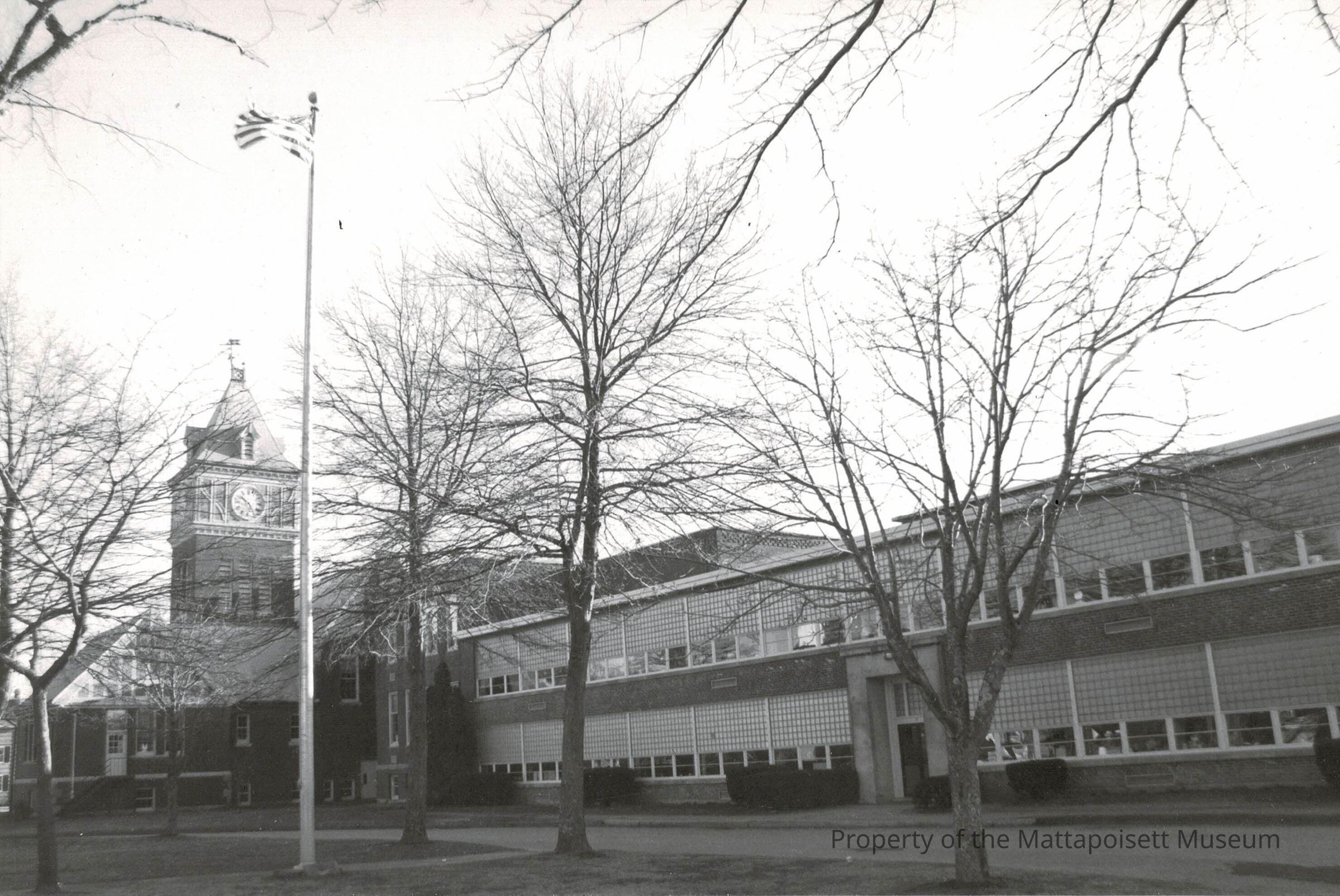 Photograph of Mattapoisett Center School, aka Rogers School, built in 1898 by Standard Oil millionaire Henry Huttleston Rogers. First addition built c. 1950s.Collection