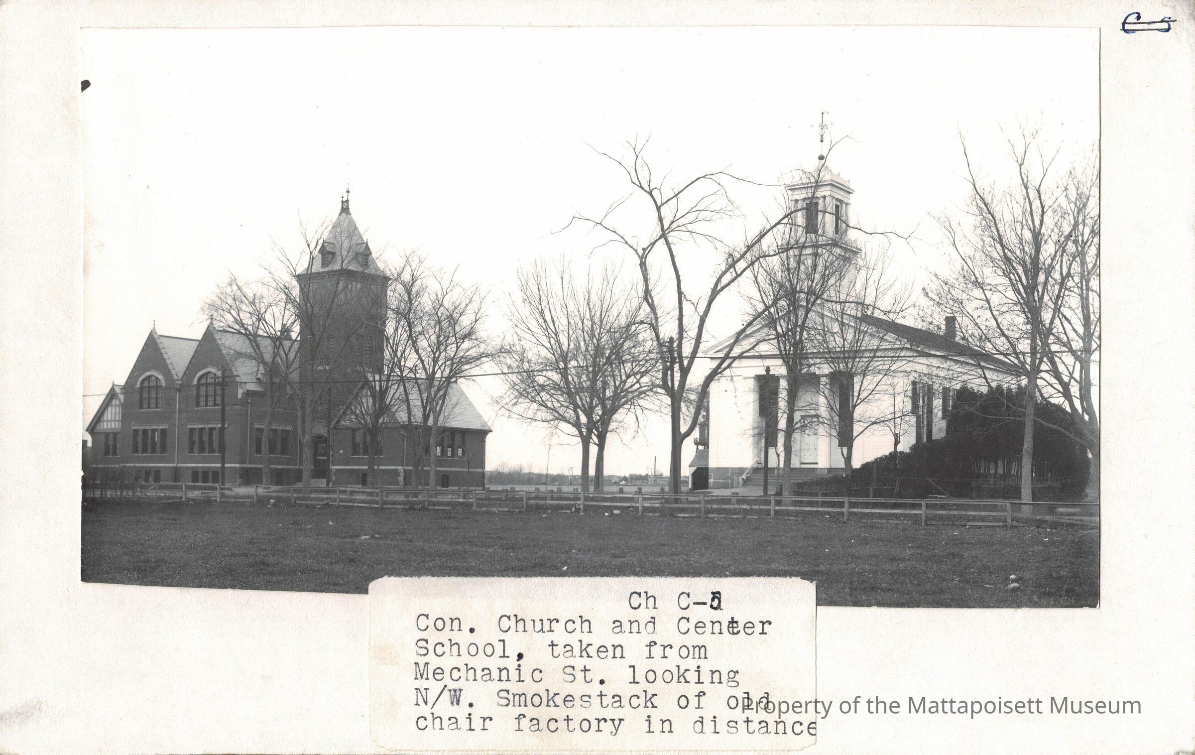 Photograph of Mattapoisett Center School, aka Rogers School, built in 1898 by Standard Oil millionaire Henry Huttleston Rogers, and the Congregational Church.Collection