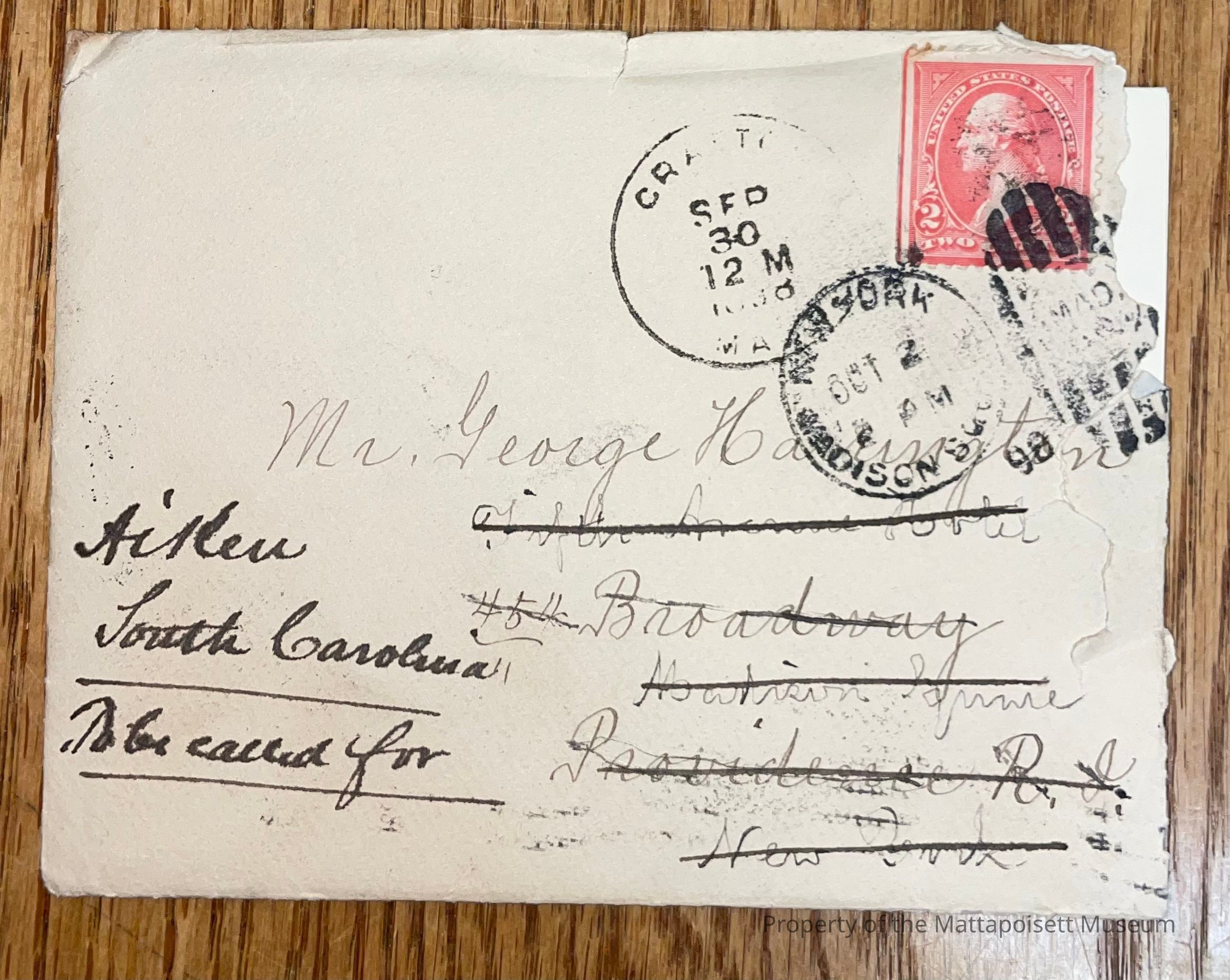Part of the 2022.4 George W. Harrington collection. Harrington is a published author who spent his summers writing in Mattapoisett. 2022.4.02 is the Personal Correspondence series.Collection