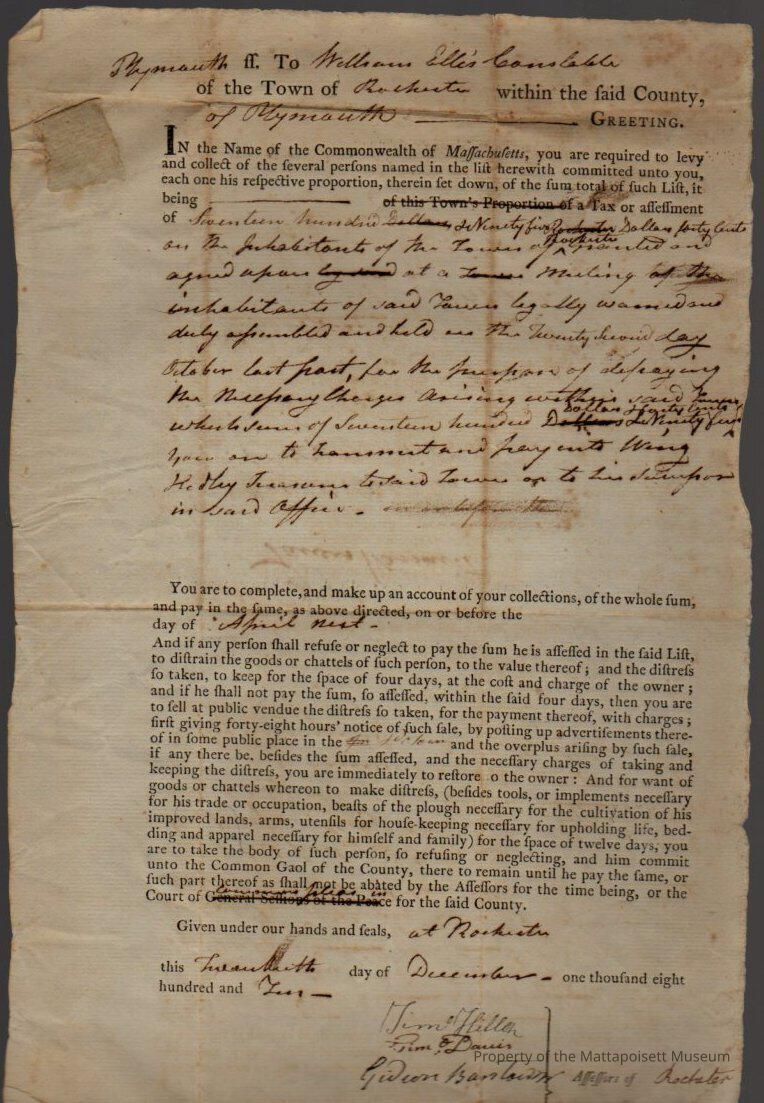 Constable William Ellis warrant to levy and collect of several persons named in the list, tax.Collection