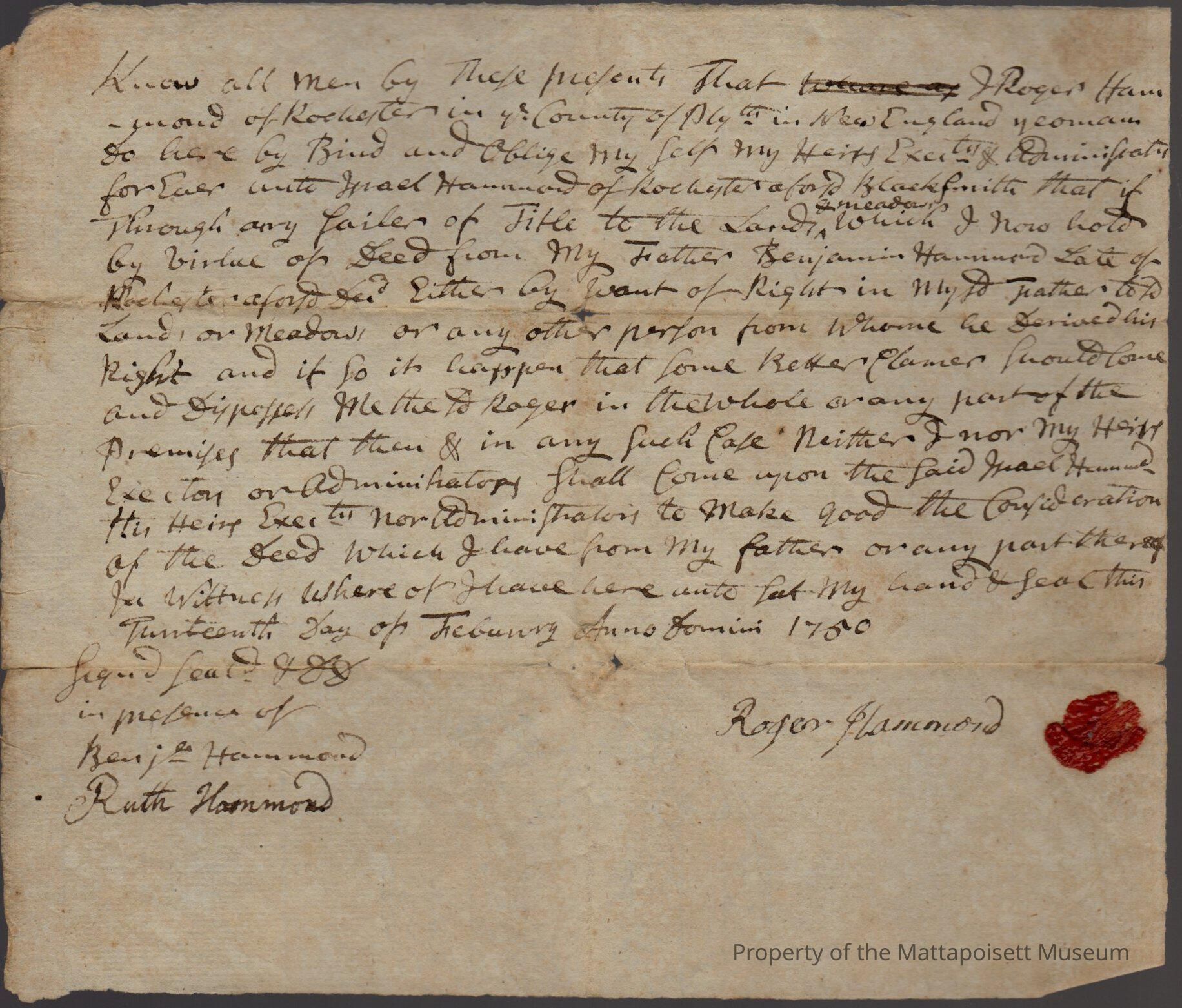 Roger Hammond, land and meadows from father, Israel Hammond.Collection