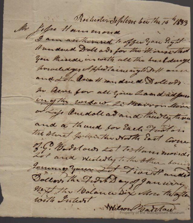 Letter of intent from Wilson Barstow to purchase horse from [John] Hammond.Collection