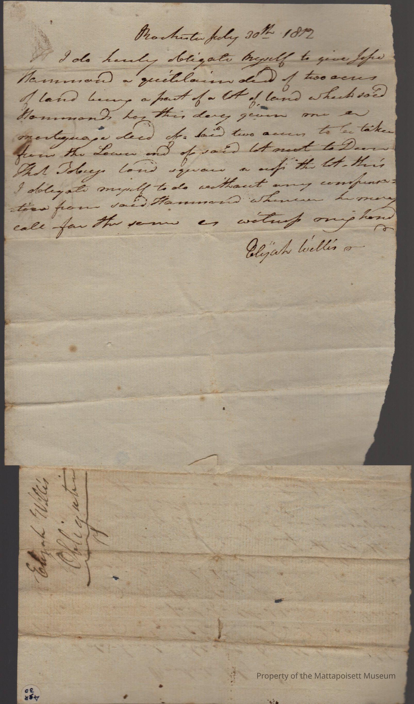 Obligation to give quitclaim deed to Joseph Hammond from Elijah WillisCollection