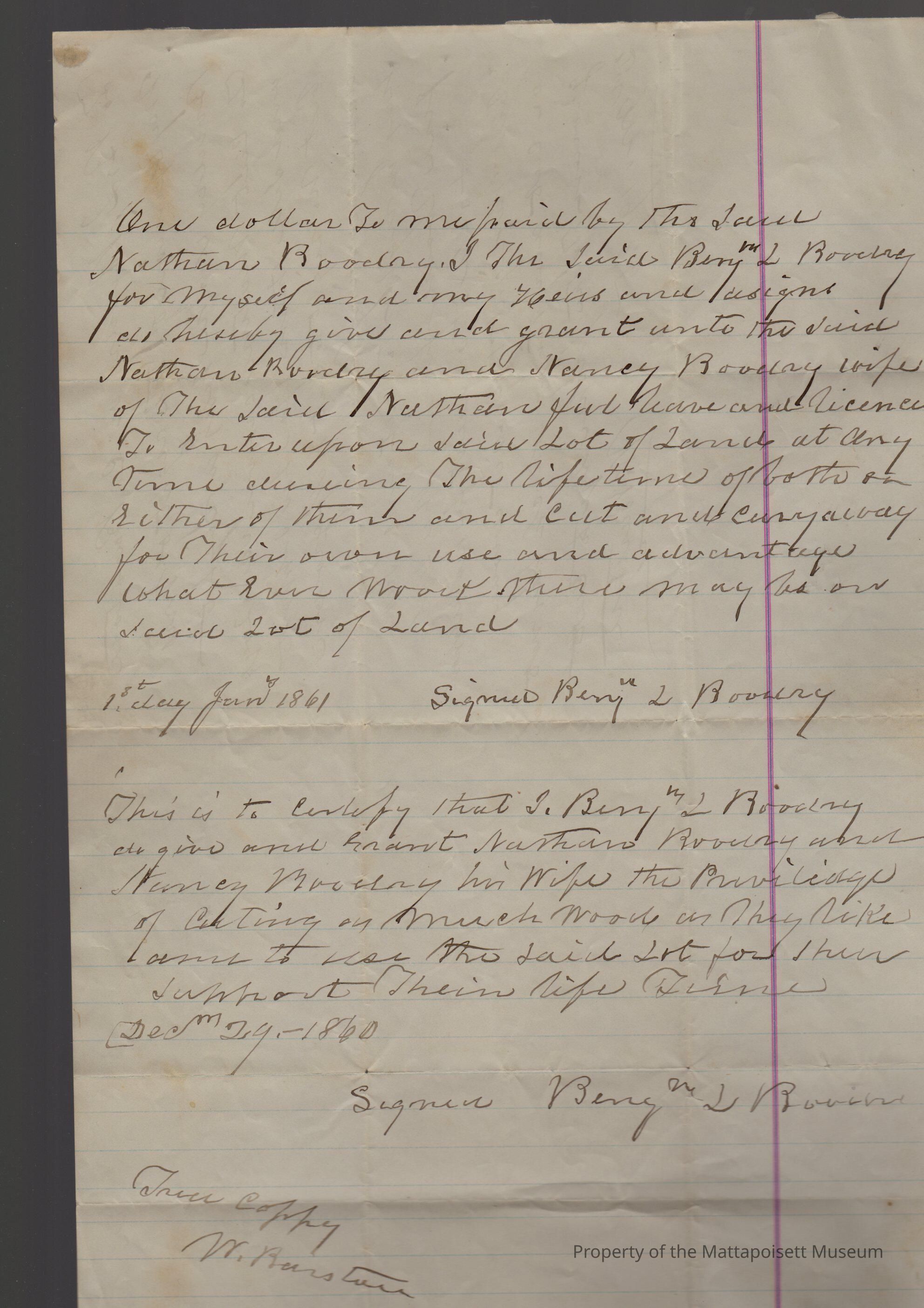 Payment (copy) from Nathan Boodry to Benjamin Boodry, to give and grant to Nathan and Nancy Boodry for lot of land.Collection