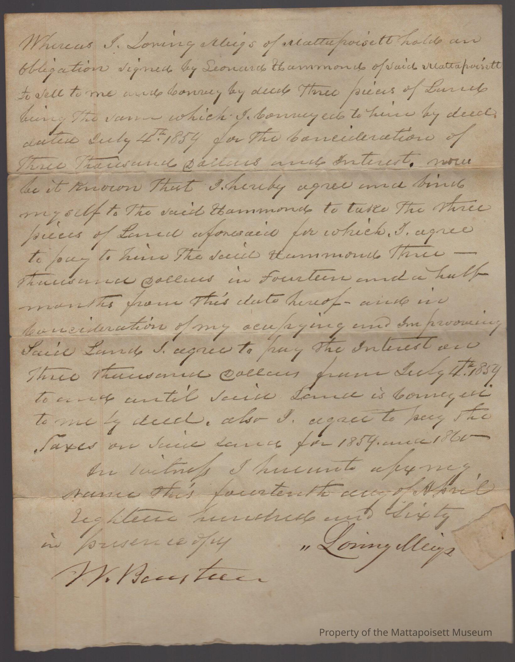 Obligation of Leonard Hammond to Loring Meigs to sell three pieces of landCollection