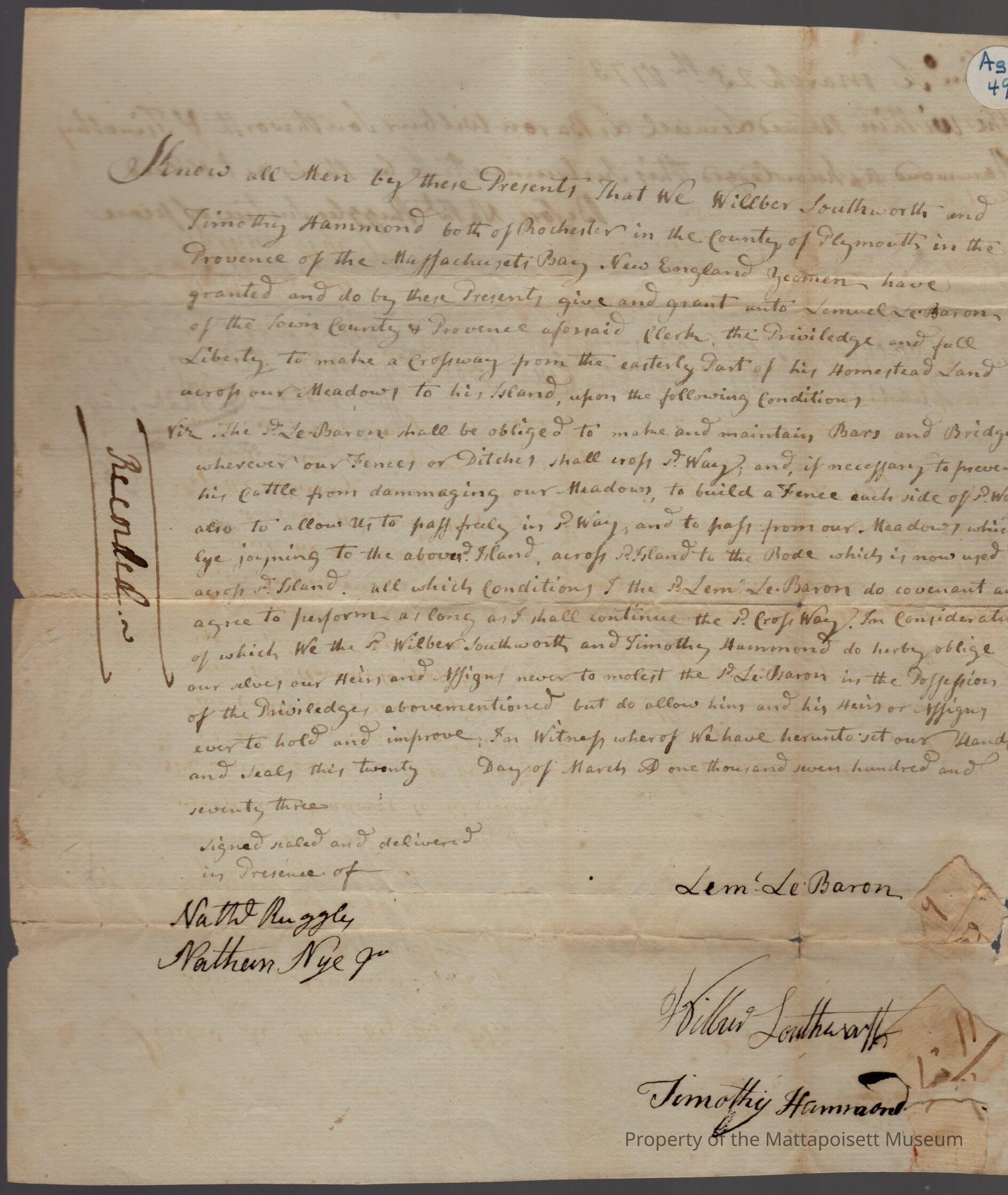 Agreement between Messrs Lemuel LeBaron, Wilbur Southworth & Timothy Hammond about a way.Collection