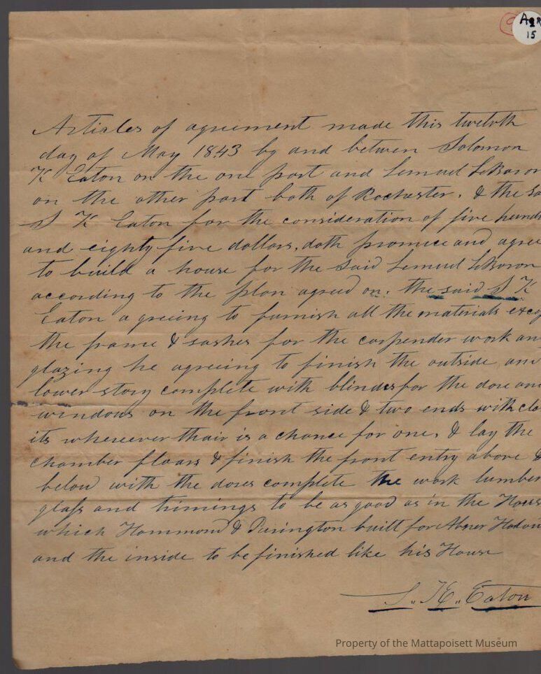 Articles of agreement between Solomon K. Eaton and Lemuel LeBaron to build a house for Lemuel LeBaron.Collection