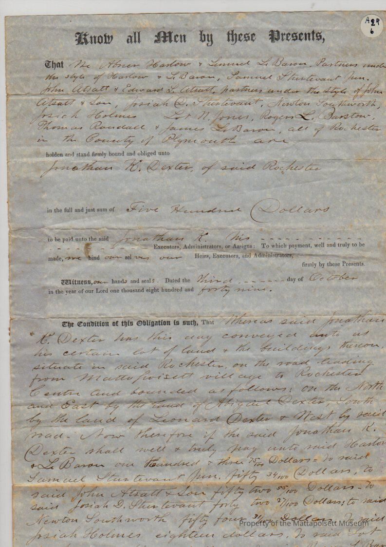 Abner Harlow & Lemuel LeBaron (& others – Samuel Sturtevant, Jr., John Atsatt & Edward L. Atsatt) to Jonathan K. Dexter.Collection